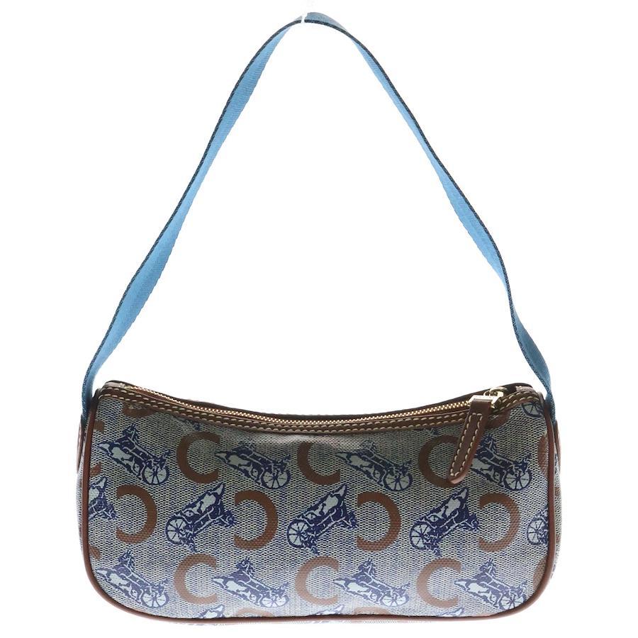 [モデル]ホースキャリッジ ハンドバッグ ワンショルダーバッグ ミニバッグ ブルー×ブラウン ゴールド金具 マルチカラー PVC