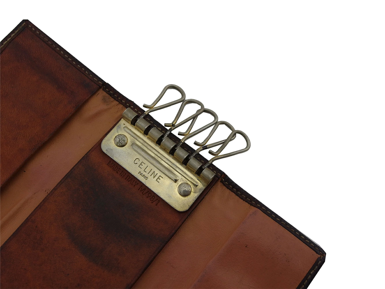 | コンディション | 全体の状態詳細:使用感がありますが、お使いいただけます。社外リペア跡(内側一部着色)。キーフック1ヵ所欠損あり。その他 スレ&汚れ(内側&ポケットもあり) 傷&黒ずみ(内側もあり) 角スレ シミ(内側) 金具ハゲ 内パイピングキレ(3ヵ所程) などの使用感があります。 |