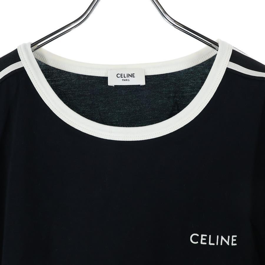 [モデル]ロゴ刺繍 サイドライン コットンジャージー クルーネック 半袖Tシャツ カットソー ブラック 2X15N671Q.38LC