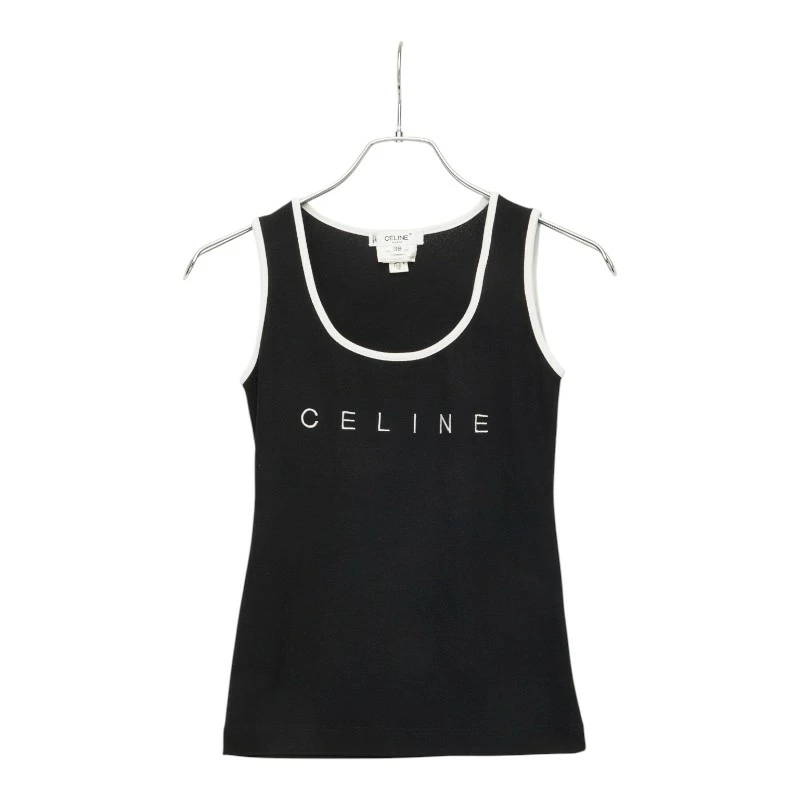 - セリーヌ ロゴ タンクトップ キャミソール ノースリーブ サイズ:38 ブラック ホワイト ポリエステル ナイロン レディース CELINE 【中古】