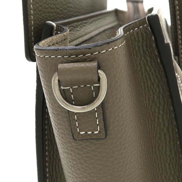 様々なサイズ展開で、セリーヌの代表的なバッグ『ラゲージ』シリーズ。その中でも、今回入荷しましたのは最小モデル『ラゲージ・ナノ』でございます☆シリーズの中で唯一ショルダーストラップが付いており、クロスボディバッグとして楽しめるのも魅力の1つです♪表面と内側の薄汚れ、内側の毛羽立ち、背面側の間口付近に若干の反り、持ち手、角や縁のスレ、持ち手コバのヒビ割れ、サイドDリング付け根の繊維飛び出し、金具の小傷くすみが見受けられますが、これからも長く愛用出来るコンディションです!人気の『スリ』カラーとなりますのでお早めにどうぞ!!