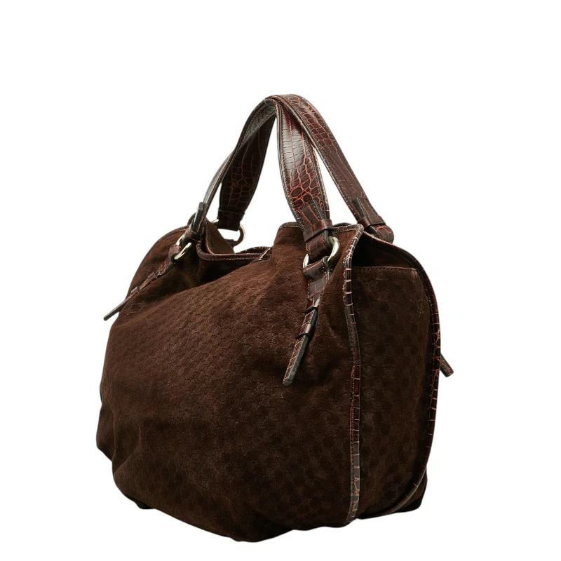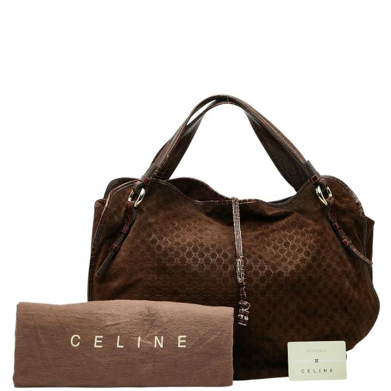 - セリーヌ マカダム クロコ型押し トートバック WCST0077 ブラウン チョコレート レザー スウェード レディース CELINE 【中古】