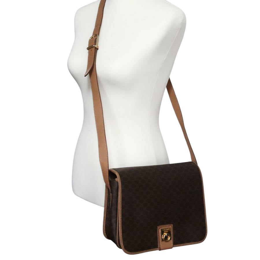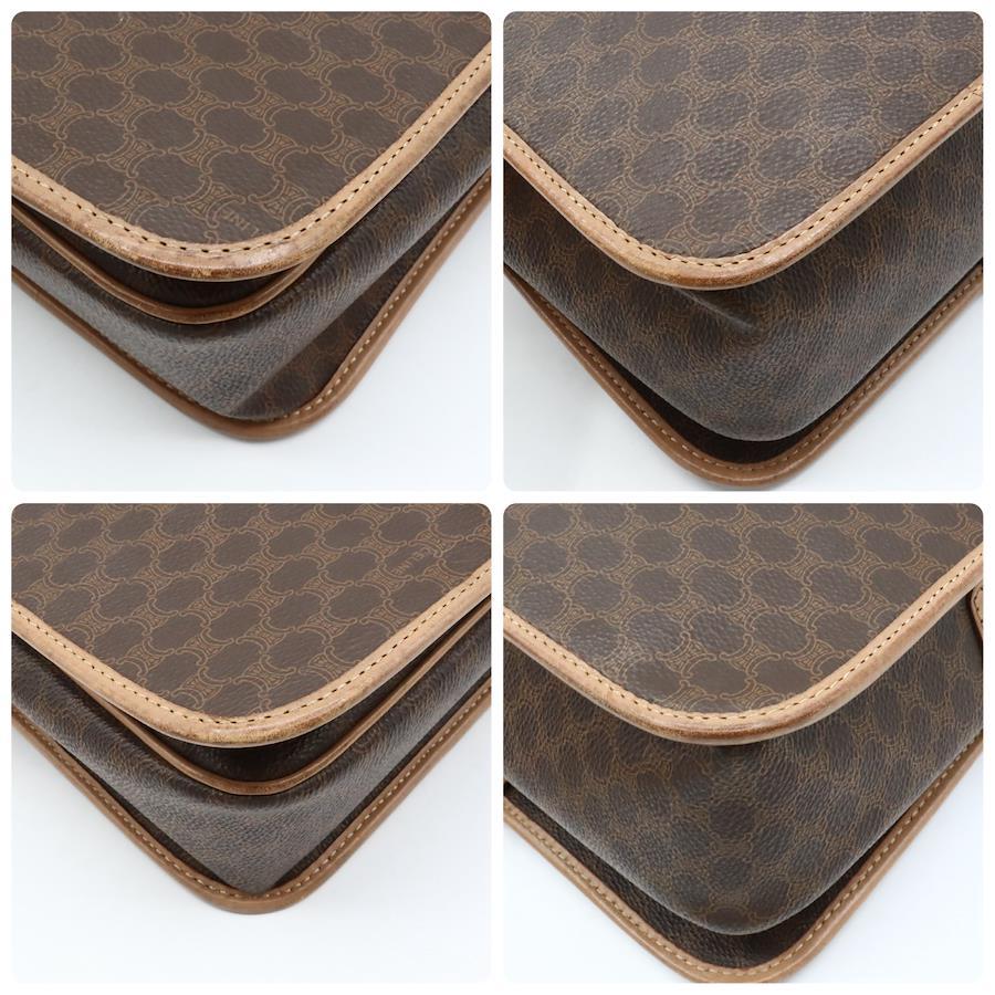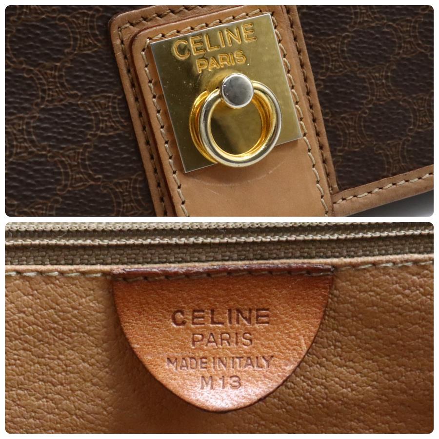 【商品説明】品名 セリーヌ マカダム柄 PVC レザー ショルダーバッグ ブラウンシリアルナンバーサイズ 約縦18センチ 横26センチ 厚み7センチ ショルダーベルト115センチ仕様 ファスナーポケット1 外ポケット1付属品 なし【商品状態】剥がれ、ベタつきありません。ファスナースムーズです。ボタンしっかりとまります。若干のスレ、ヨレ、匂いがあります。届いたらすぐに気持ちよくお使いいただけるコンディションです。この機会に是非お買い求めください
