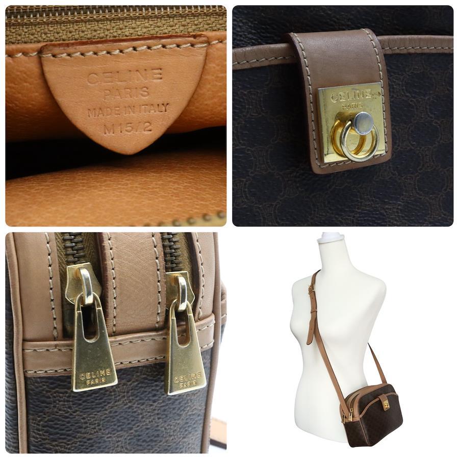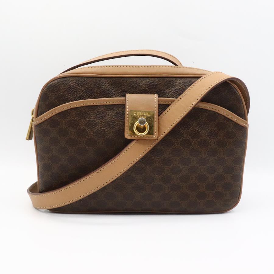 【商品説明】品名 セリーヌ マカダム柄 PVC ショルダーバッグ ブラウン ゴールド金具シリアルナンバーサイズ 約縦16センチ 横23センチ 厚み7センチ ショルダー103~120センチ仕様 ポケット1 ファスナーポケット1付属品 なし【商品状態】剥がれ、ベタつきありません。ファスナースムーズです。ボタンしっかりとまります。若干のスレ、ヨレがあります。届いたらすぐに気持ちよくお使いいただけるコンディションです。この機会に是非お買い求めください