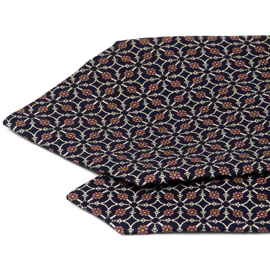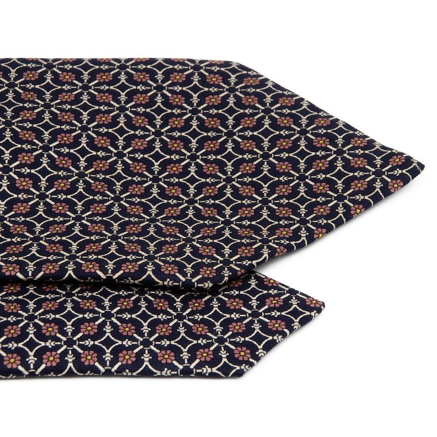 スペインの工房で仕立てられた上質なシルクに、可憐な小花柄が幾何学的に配置されました。