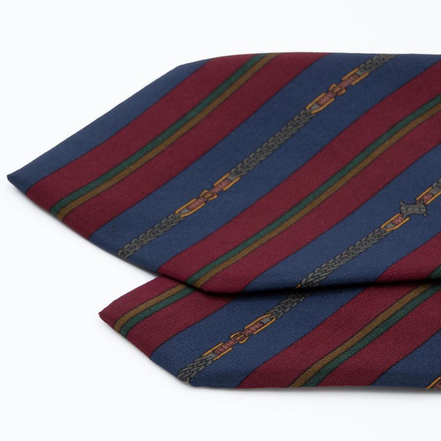 知的で誠実な印象のネイビーブルーと、力強く情熱的なワインレッドを組み合わせた、王道のストライプ柄。