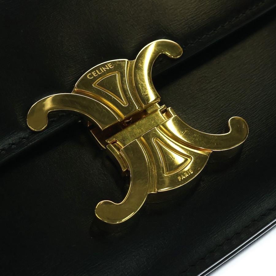Celine Triomphe Teen Shiny Calfskin Leather Shoulder Bag Black Women's - Black