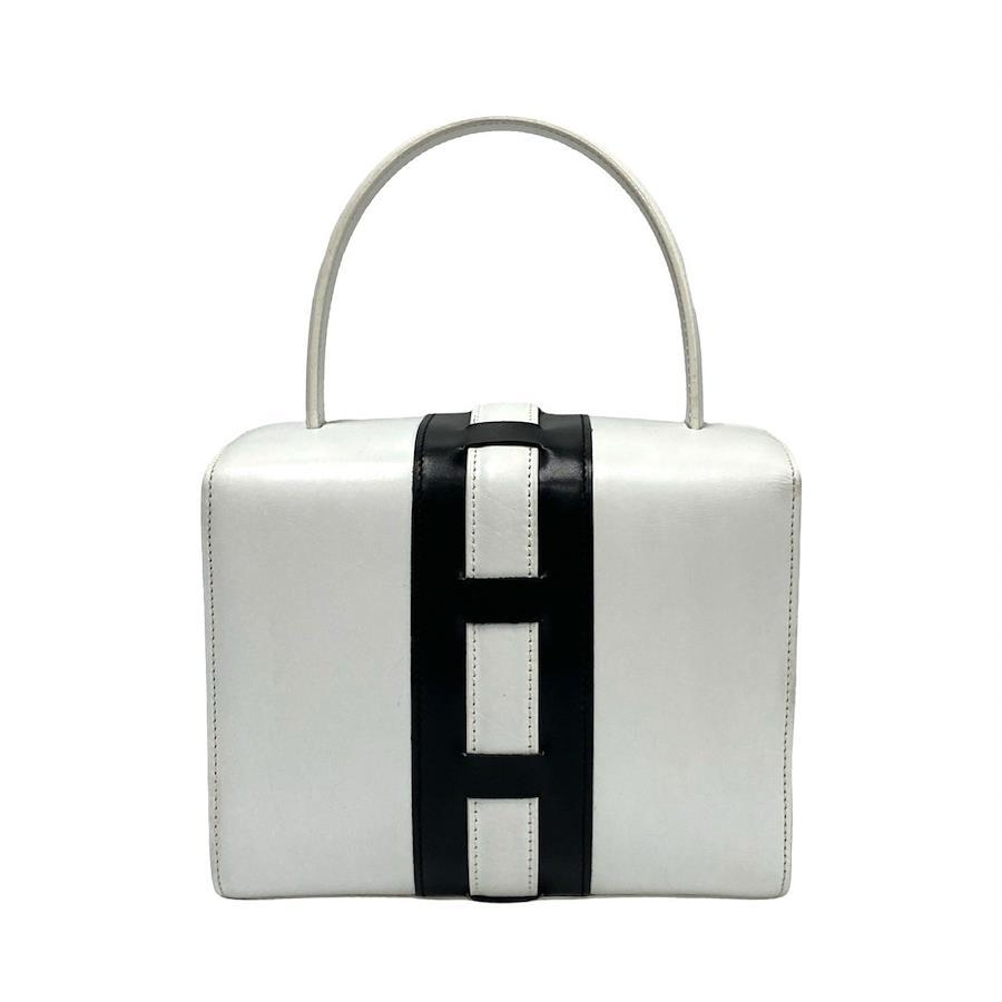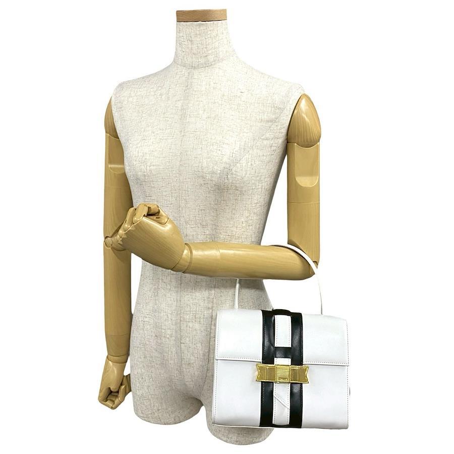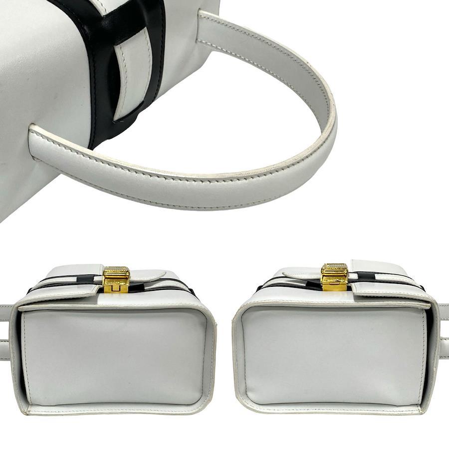 CELINE Vintage Logo Ribbon Hardware Leather Genuine Leather Handbag Mini Tote Bag White Black 38242 with Bag