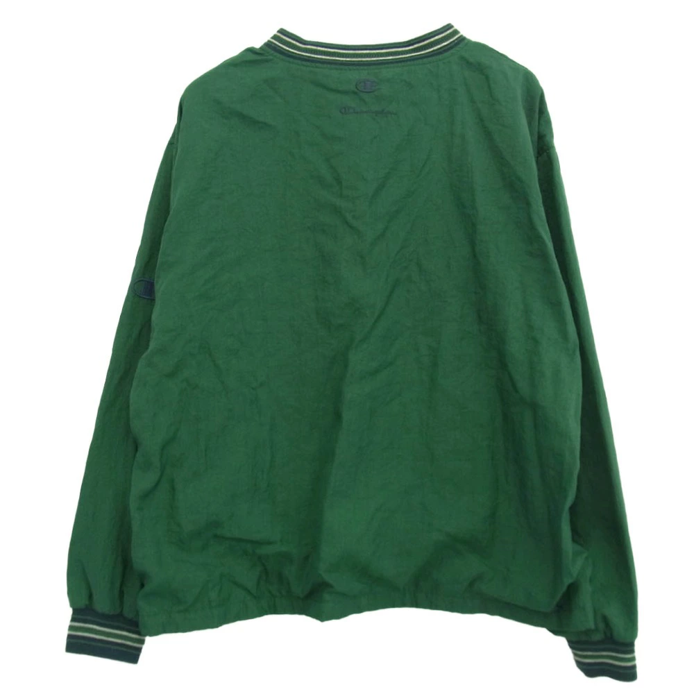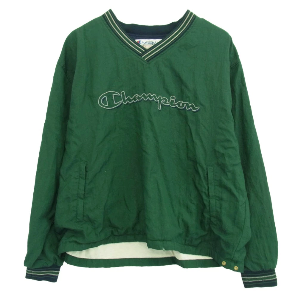 Champion 90s/00s V-neck logo embroidered pullover nylon jacket anorak, green, size XL, men's [used clothing]