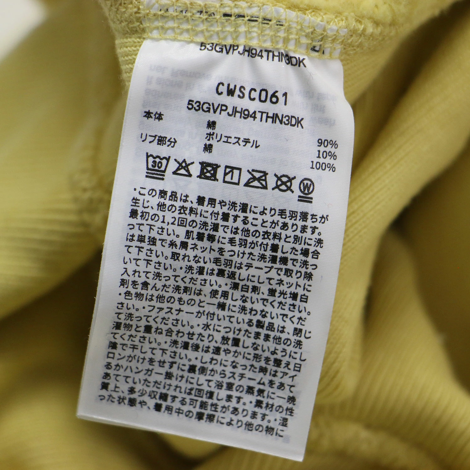 | 素材 | 本体 コットン 90% ポリエステル 10% リブ部分 コットン 100% |