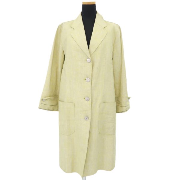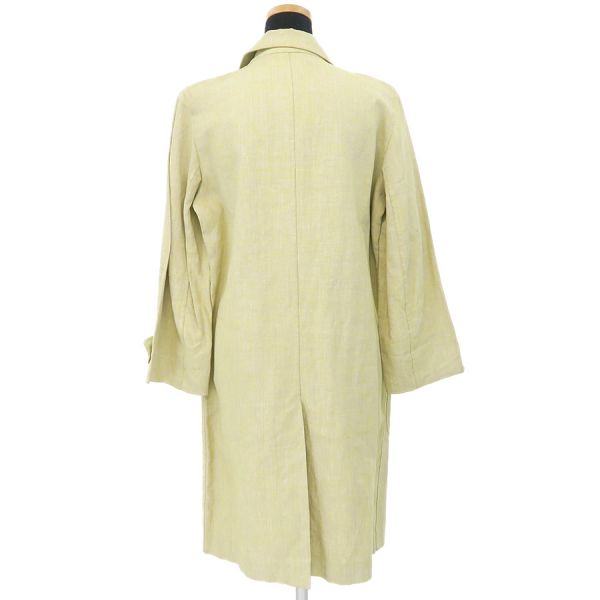 ■採寸#36 肩幅40cm 袖丈53cm B100cm W96cm 着丈94cm■素材リネン100%■コメントシャネルから00Cコートが入荷しました!タグに色褪せ、ボタンに糸ホツレや細かなキズ、スレ、くすみ、袖先やストラップ部分に薄汚れや折れ跡、肩周りや脇下などに黒い薄汚れ、全体にシワや収納跡、ヨレがみられるためBランク評価になります。