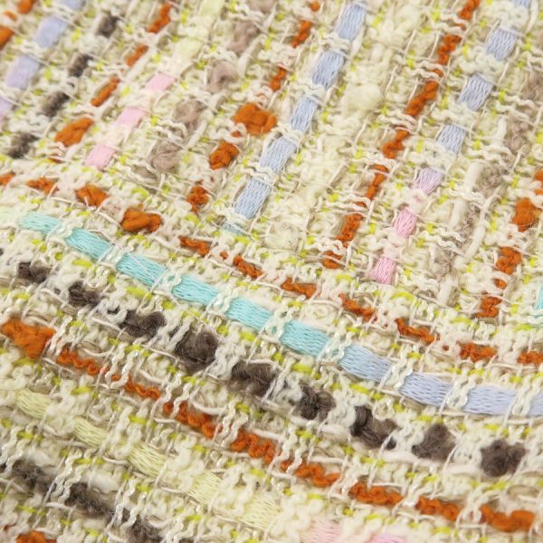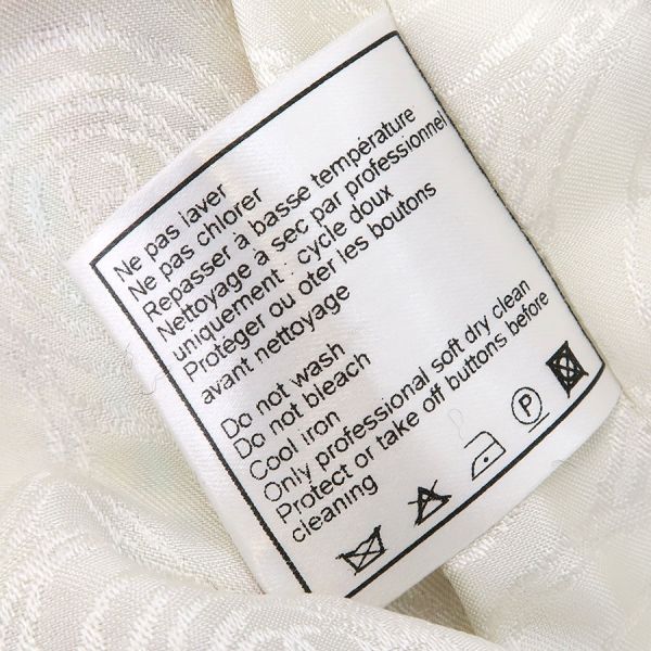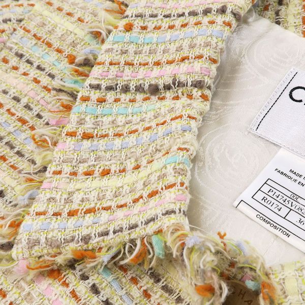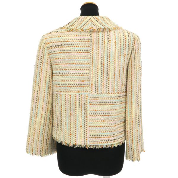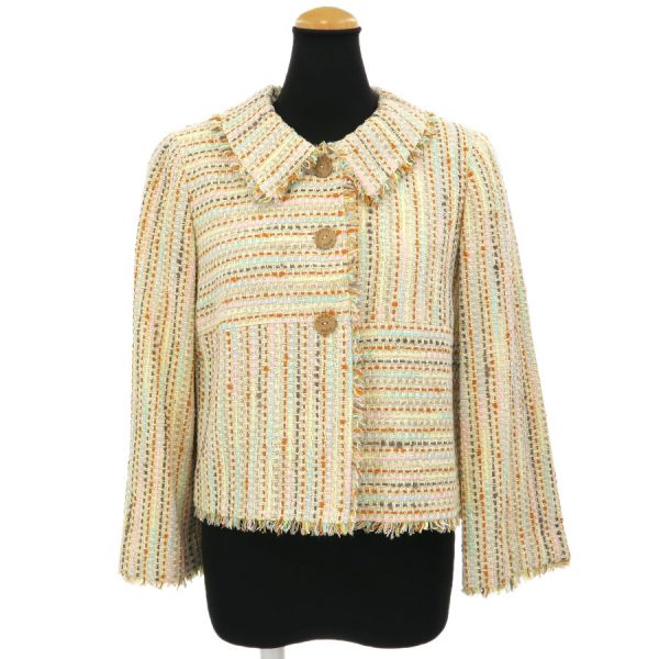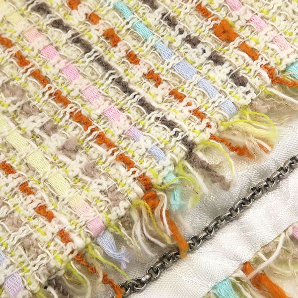 ■採寸#36 肩幅38cm 袖丈51cm B88cm 着丈48cm■素材ウール53% コットン22% レーヨン10% ナイロン9% リネン6%裏地 シルク100%■コメントシャネルから00Cジャケットが入荷しました!木のボタンが可愛らしいジャケットです。フリンジに乱れやヨレ、後ろ身ごろ裏地中心右ウエスト下や右腰付近に糸引き、全体にシワや収納跡、ヨレ、起毛感がみられるためBランク評価になります。