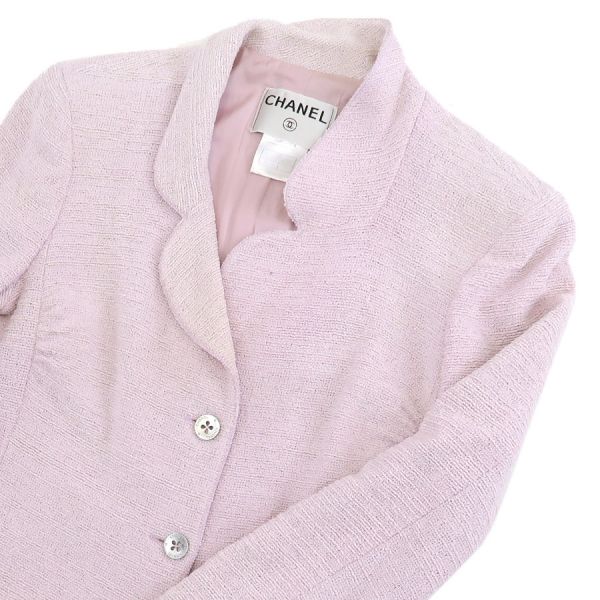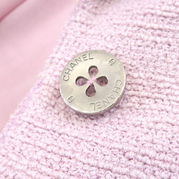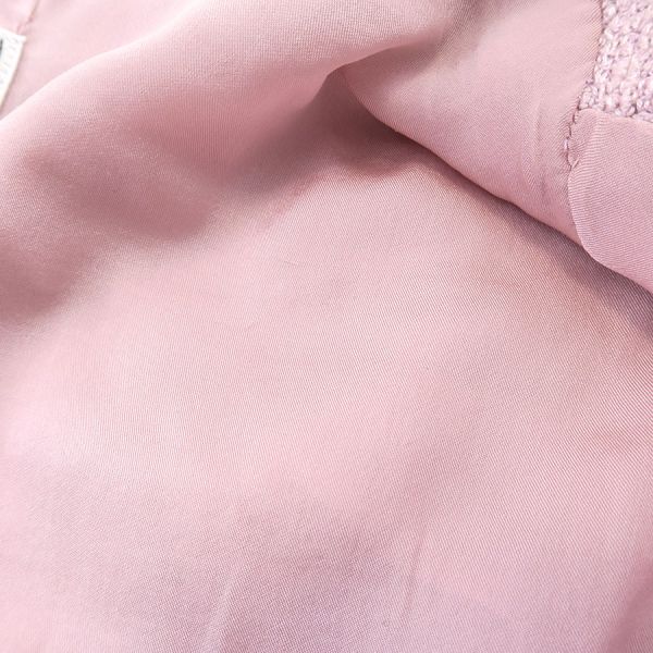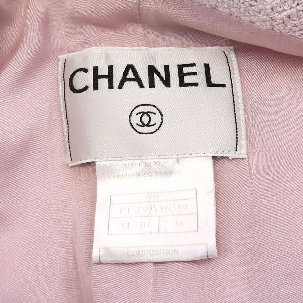 ■採寸#38 肩幅41cm 袖丈55cm B88cm 着丈52cm■素材コットン92% ナイロン8%裏地 シルク90% スパンデックス10%■コメントシャネルから00Tジャケットが入荷しました!タグに印字薄れ、脇裏や裏地脇下、表地右サイド裾、襟裏などに黄ばみ汚れ、後ろ身ごろ裏地左肩下に糸引き、ボタンに細かなキズやスレ、くすみ汚れ、全体にシワや収納跡、ヨレ、色褪せ、襟で隠れている部分と比べると色の違いが分かるような全体的に色ヤケやピンクの色が色褪せている部分などがみられるためCランク評価になります。