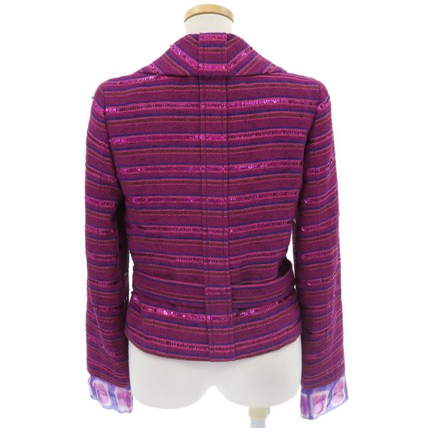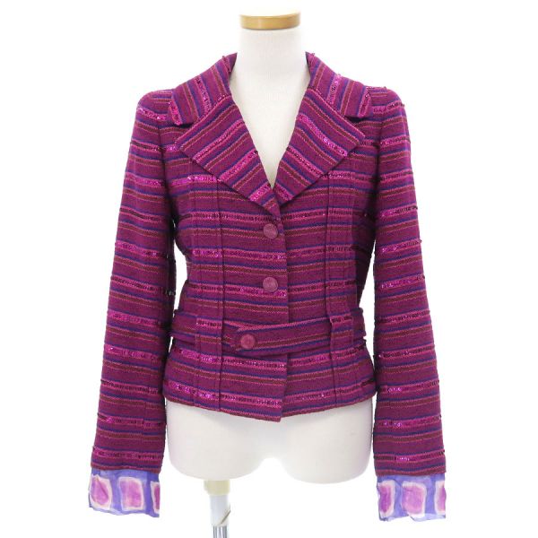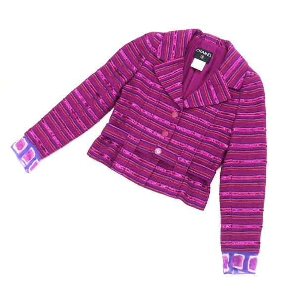 ■採寸#34 肩幅:38cm 袖丈:60cm B:90cm 着丈:48cm■素材表地:コットン42% ナイロン33% アセテート14% ポリ塩化ビニル11% 裏地:シルク100%■コメントシャネルから01Pジャケットが入荷しました。状態は全体に起毛感・毛羽立ち、左袖裏にスレ・毛羽立ち等が見受けられる為、Bランクでのご紹介です。目立つ汚れやダメージはないので、まだまだ問題なくご着用いただけます。