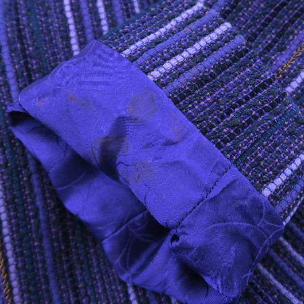 ■採寸#40 肩幅37cm 袖丈55cm B98cm 着丈65cm■素材ウール42% メタル25% コットン14% ナイロン12% 麻7%裏地 シルク100%■コメントシャネルから01Pジャケットが入荷しました!脇裏に黄ばみ汚れ、左袖裏にシミ汚れ、裏地右肩甲骨付近や左肩甲骨下、裾裏などに糸引き、全体に起毛感やシワ、収納跡、ヨレがみられるためBランク評価になります。