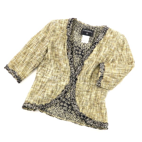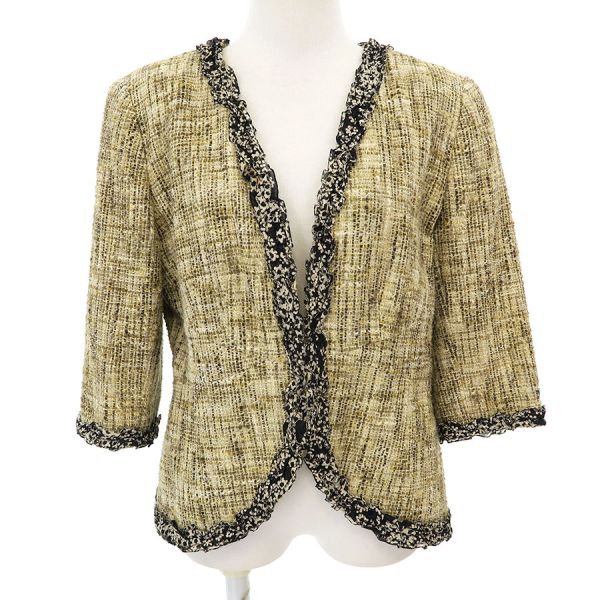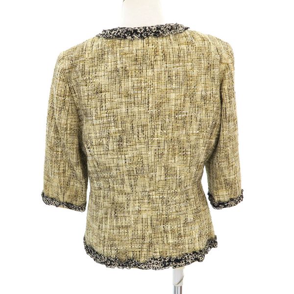 ■採寸#43 肩幅:41cm 袖丈:39cm B:92cm 着丈:54cm■素材表地:コットン94% レーヨン6% 裏地:コットン45% ナイロン40% エレスタン15%■コメントシャネルから03Pジャケットが入荷しました。左袖のココマークがワンポイントで素敵です☆状態は全体的に起毛感・毛羽立ち、前身頃右襟にヤケシミ、両脇裏に色褪せ等が見受けられますので、Bランクでのご紹介です。目立つ汚れやダメージはないので、まだまだ問題なくご着用いただけます。