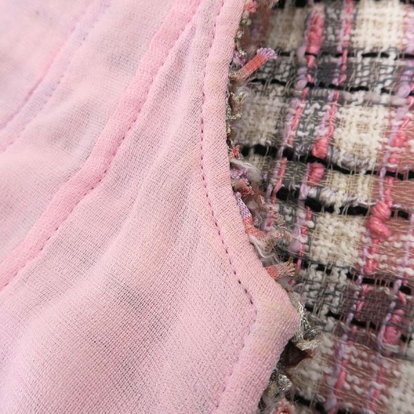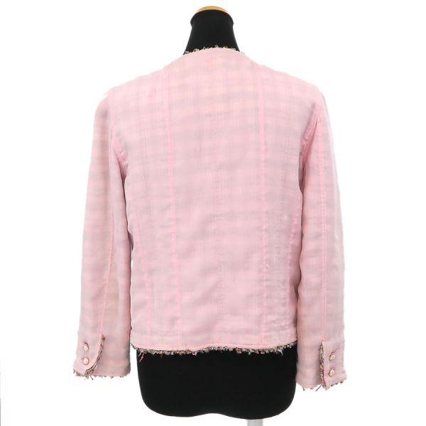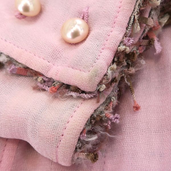 ■採寸#36 肩幅38cm 袖丈51cm B90cm 着丈49cm■素材シルク100%裏地 コットン45% ウール29% レーヨン26%■コメントシャネルから03Pジャケットが入荷しました!裏側がツイードになったデザインのジャケットです。襟山に黄ばみ汚れ、袖先に薄汚れ、右襟にホツレ、右肩に糸引き、ポケットや袖のボタンにキズやスレ、全体にシワや収納跡、ヨレがみられるためBランク評価になります。