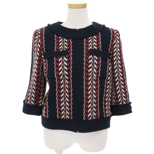 ■採寸#36 肩幅37cm 袖丈37cm B88cm 着丈43cm■素材ウール100%裏地 シルク96% スパンデックス4%■コメントシャネルから04Aジャケットが入荷しました!裏地左肩部分や左肩甲骨付近などに糸引き、右脇裏にホツレ、右袖裏に薄汚れ、ジッパーつまみにメッキ剥げやスレキズ、全体に起毛感やシワ、収納跡、ヨレがみられるためBランク評価になります。