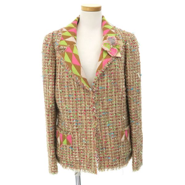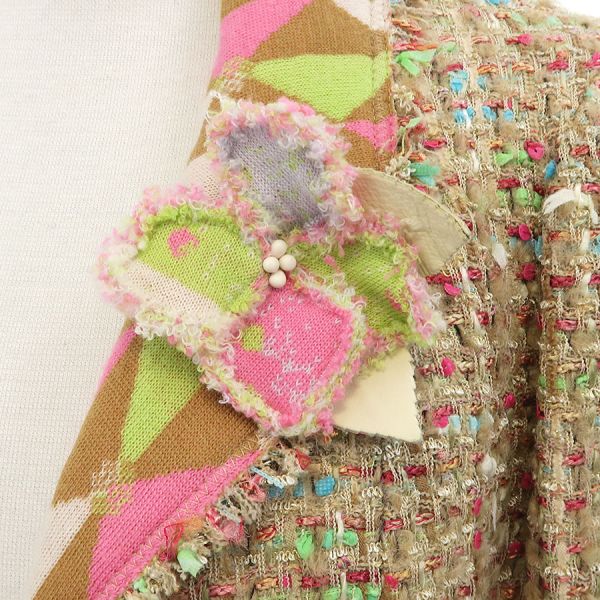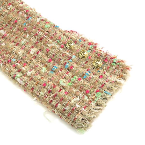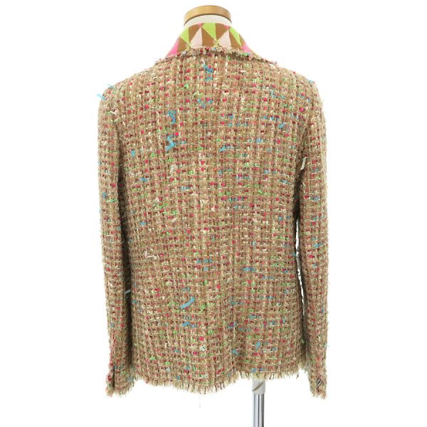 ■採寸#44 肩幅:38cm 袖丈:56cm B:92cm 着丈:57cm■素材ナイロン45% ウール20% ポリエステル11% コットン9% アクリル7% アルパカ5% レーヨン3% その他生地:シルク90% エレスタン10% 裏地:カシミヤ57% ウール43%■コメントシャネルから04Aジャケットが入荷しました。上質な素材と巧みなデザインが融合した、表面はクラシックな素材、裏地やポケット部分にはニット素材で、快適な着心地と柔らかなフィット感で、洗練されたシルエットと上品なディテールが、カジュアルからきれいめまで幅広いコーディネートにマッチ。CHANELらしい素敵なジャケットです☆状態はやや起毛やフリンジに乱れ、裏地にところどころ糸飛びが見受けられますので、Bランクのご紹介ですが、目立つ汚れやダメージはないので、まだまだ問題なくご着用いただけます。