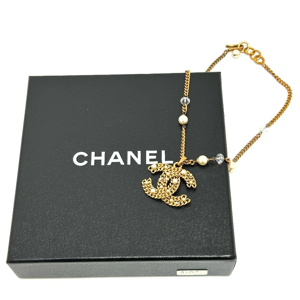 | 商品説明 | ココマークとフェイクパールがあしらわれたゴールドチェーンネックレスは、シャネルらしい華やかさと上品さを兼ね備えた、人気の高いヴィンテージアイテムです。 |