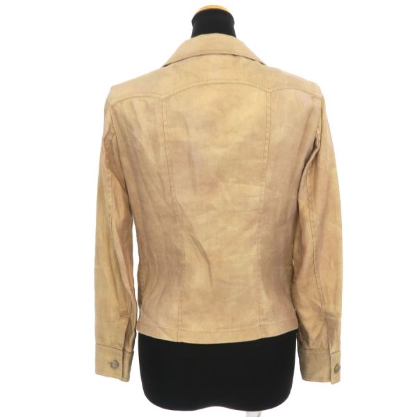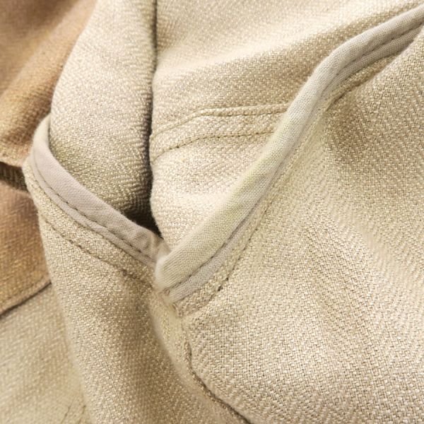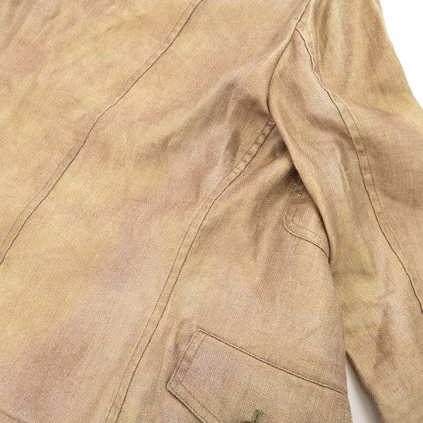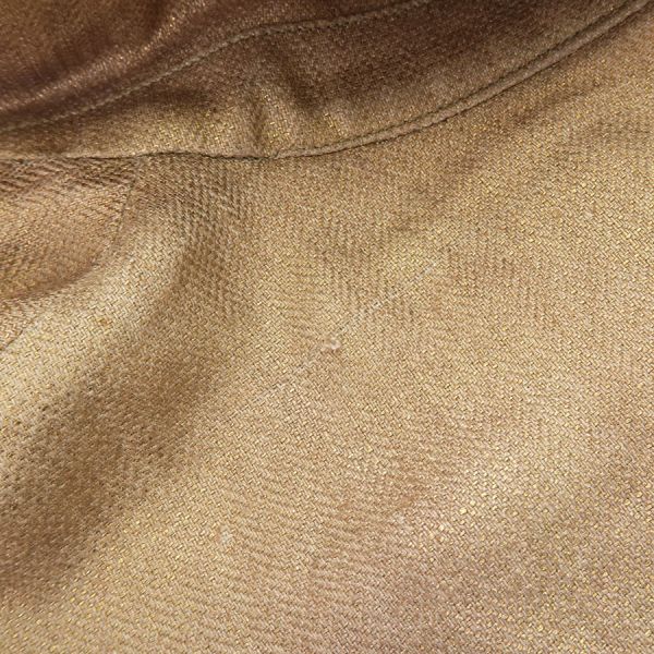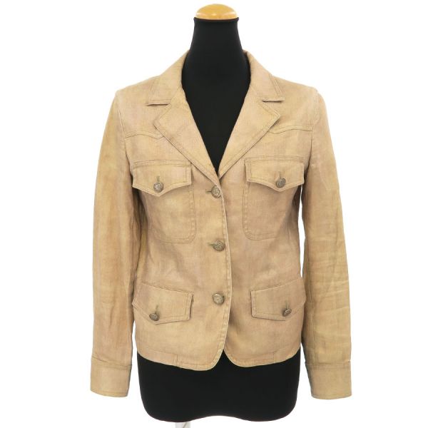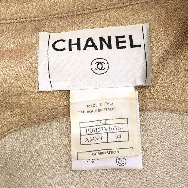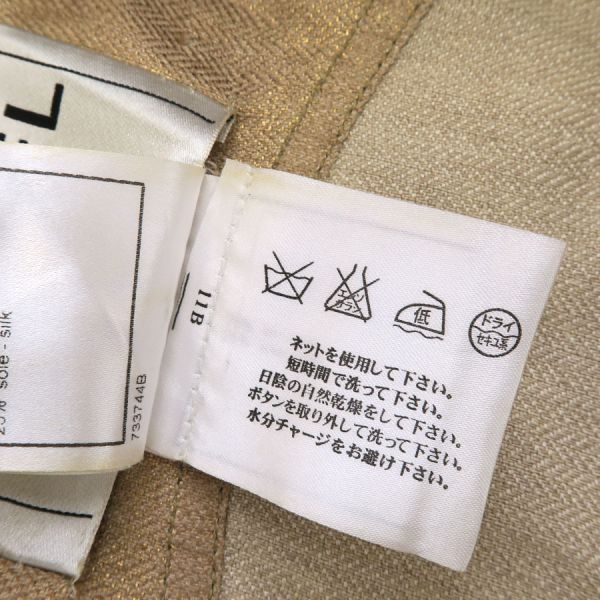 ■採寸#34 肩幅:38cm 袖丈:53cm B:84cm 着丈:50cm■素材リネン75% シルク25%■コメントシャネルから05Pジャケットが入荷しました。ラメ糸が施されたシャンパンゴールド系のお色味で、シャツの様に薄くて軽い生地感のジャケットです☆状態は全体にシワ・畳み跡や前身頃右襟ボタン穴辺りにシミ、表後ろ右サイドや袖などにヤケ、裏脇の汚れ、表左肘の汚れ、タグの汚れ、後ろ身頃左上に糸引き等など見受けられる為お買い得価格でご紹介です!