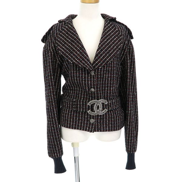 ■採寸#38 肩幅:50cm 袖丈:60cm B:88cm 着丈:56cm■素材表地ウール30% カシミヤ30% シルク15% アンゴラ15% ナイロン10% 裏地:シルク86% エレスタン14%■コメントシャネルから08Aジャケットが入荷しました。全体にチェック柄にココマークのベルトが印象的なジャケットです☆状態は全体に起毛感・毛羽立ち、ブランドタグにスレ等が見受けられますが、目立つ汚れやダメージはないので、Aランク寄りのBランクでのご紹介です。まだまだ長くご着用いただけます。