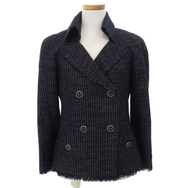 ■採寸#36 裄丈:71cm B:86cm 着丈:54cm■素材コットン46% ウール28% ナイロン19% レーヨン5% メタル2% 裏地:シルク86% エレスタン:14%■コメントシャネルから08Pジャケットが入荷しました。ツイード生地に裏地にはココマークとカメリアの総柄が素敵なジャケットです☆状態は袖やフリンジにやや乱れ、ブランドタグにスレ・ペン跡等が見受けられますが、目立つ汚れやダメージはないので、Aランク寄りのBランクでのご紹介です。まだまだ問題なくご着用いただけます。