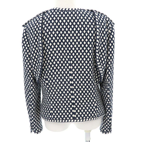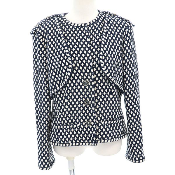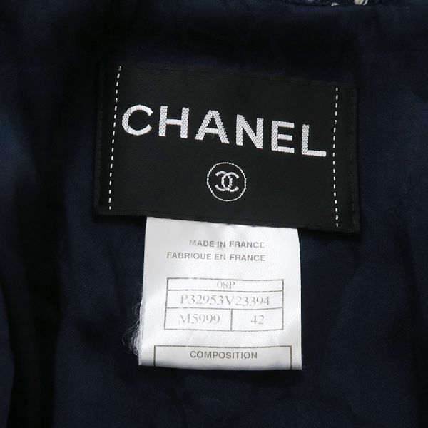 ■採寸#42 肩幅41cm 袖丈54cm B90cm 着丈49cm■素材バンブー32% レーヨン30% コットン27% シルク11%裏地 シルク86% スパンデックス14%■コメントシャネルから08Pジャケットが入荷しました!胸元リボンの欠品、脇裏に薄汚れ、前身ごろ右ウエスト付近にシミ汚れ、ボタンに小キズやスレ、くすみ、左襟に糸の飛び出し、全体に毛羽立ちやシワ、収納跡、ヨレがみられるためBランク評価になります。