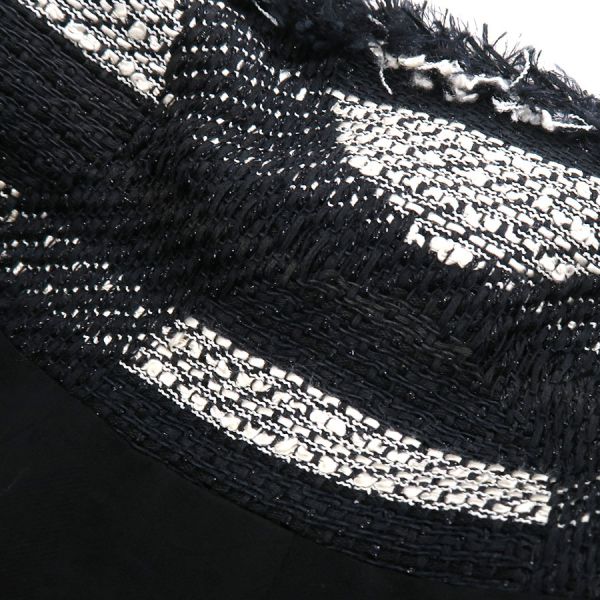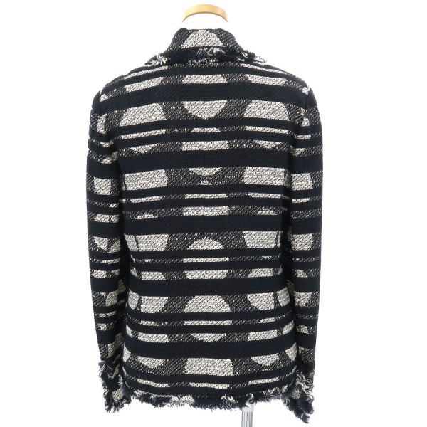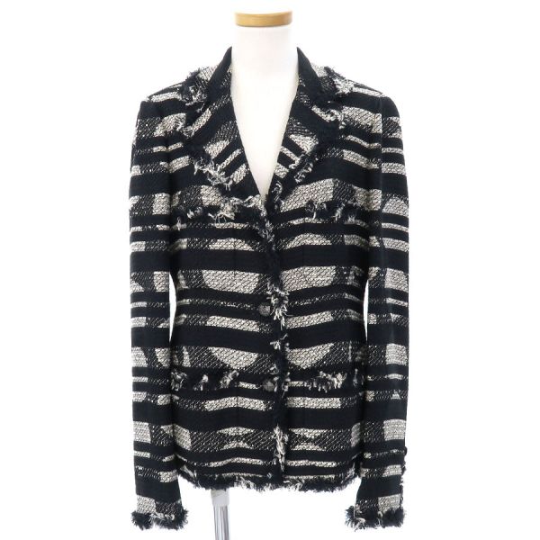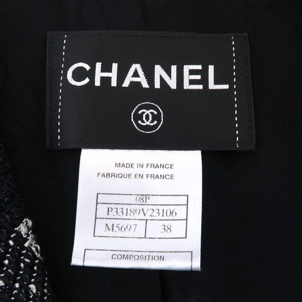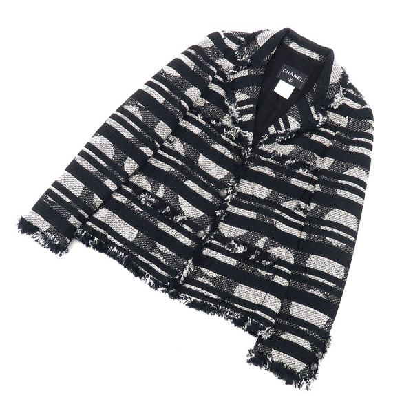 ■採寸#38 肩幅:41cm 袖丈:62cm B:90cm 着丈:61cm■素材コットン55% ナイロン29% シルク18% 裏地:シルク100%■コメントシャネルから08Pジャケットが入荷しました。シャネルらしいデザインのボーダー柄にココマークボタンが素敵なツイードジャケットです☆状態は全体にツイード生地特有の起毛感、袖や裾の糸の乱れ、後ろ襟周りやや汚れ、左袖下・前身頃第一のボタンに石取れ等が見受けられますのでBランクでのご紹介です。目立つ汚れやダメージはないので、まだまだ問題なくご着用いただけます◎