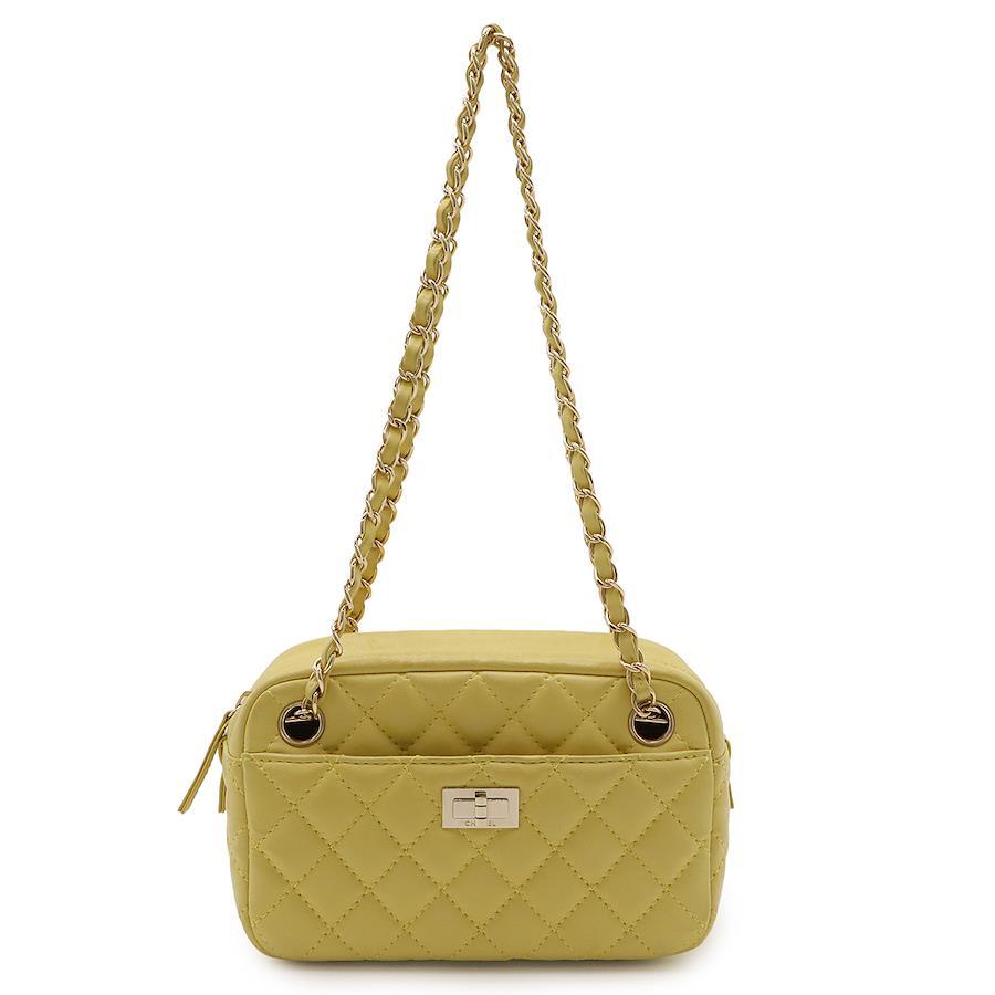 【商品説明】[サイズ]W20cm H12.5cm D7.5cm[材質]ラムスキン[カラー]イエロー[仕様]外側ポケット1、背面ポケット1、内側ポケット1[付属品]ギャランティカード[重さ]約360g