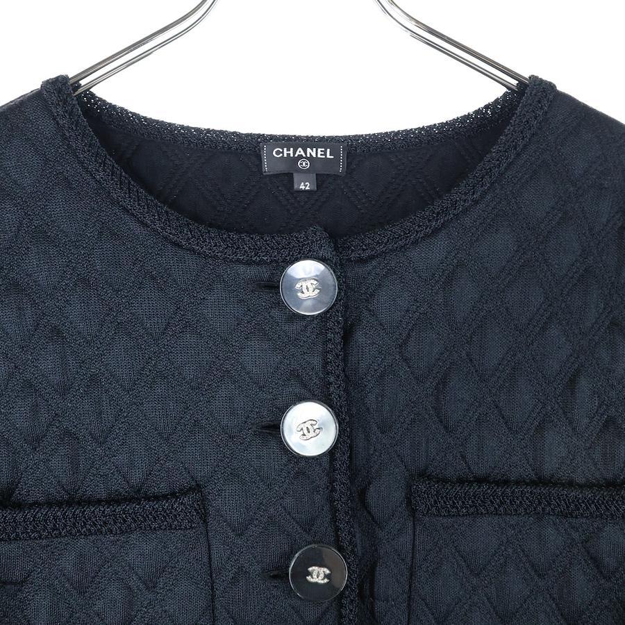 [モデル]17AW ココマークボタン シルクニット クルーネック ジャケット ブラック レディース P57008K07441