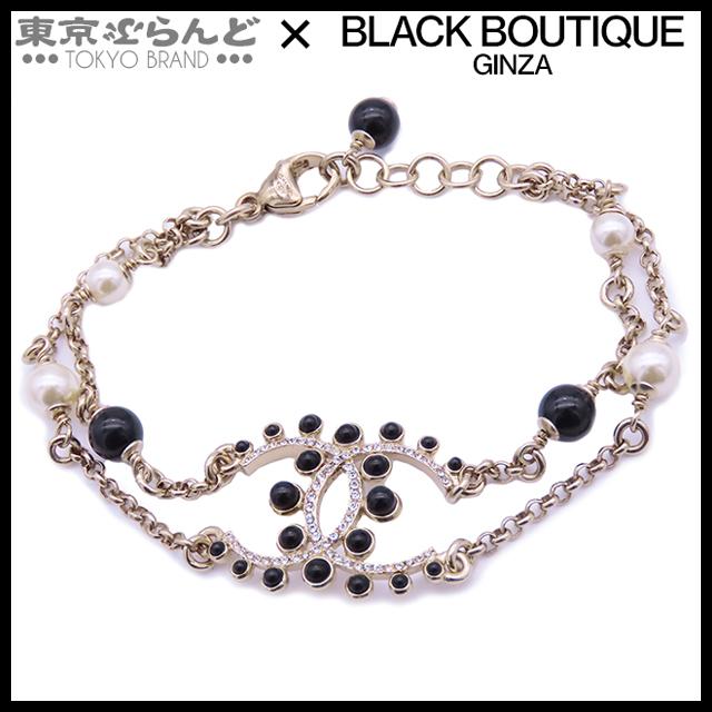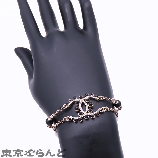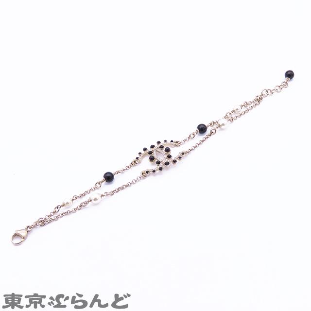 241 CHANEL COCOmark Bracelet G19 V Gold Metal Rhinestone Costume Pearl GP Women's