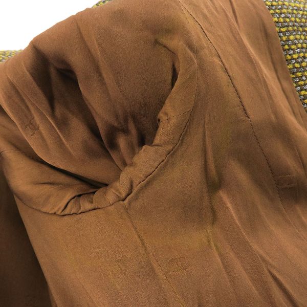 ■採寸#38 肩幅:37cm 袖丈:52cm B:84cm 着丈:62cm■素材表地:ウール75% ナイロン25% 裏地:シルク95% スパンデックス5%■コメントシャネルから96Aジャケットが入荷しました。ココマークボタンと、裾にゴールドカラーのチェーンがシャネルらしい素敵なジャケットです☆状態は全体に生地特有の起毛感・やや毛羽立ち、両脇裏に汗ジミ等が見受けられますのでBランクでのご紹介です。目立つ汚れやダメージはないので、まだまだ問題なくご着用いただけます。
