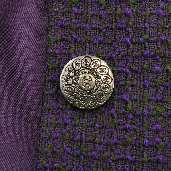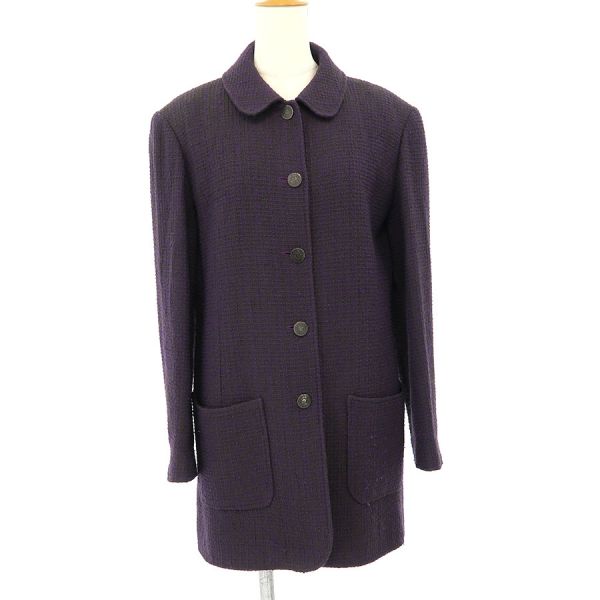 ■採寸#38 肩幅:47cm 袖丈:60cm B:104cm 着丈:80cm■素材ウール96% ナイロン4% 裏地:シルク100%■コメントシャネルから97Aジャケットが入荷しました。ココマークボタンが素敵なツイードロングジャケットです☆状態は全体に起毛感・やや毛羽立ち、襟周りにスレ・破れ、両袖口裏にスレ汚れ、前身頃左に糸飛び等が見受けられますので、Cランクでのご紹介です。着用する分には問題ない程度となっております。
