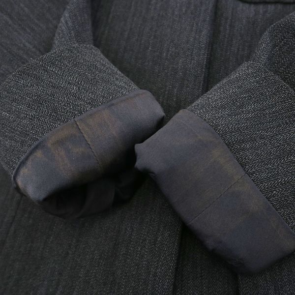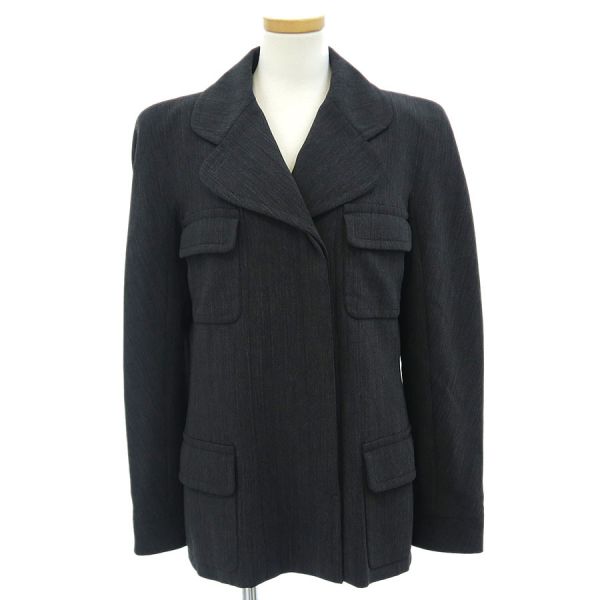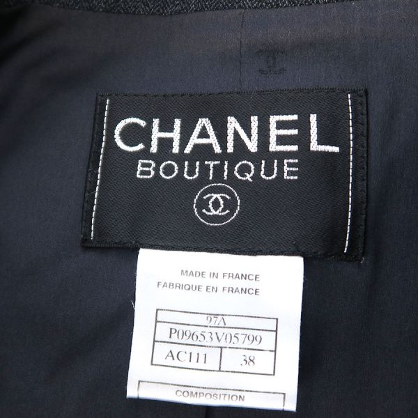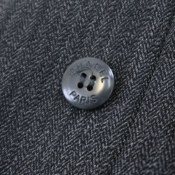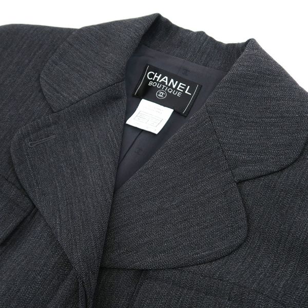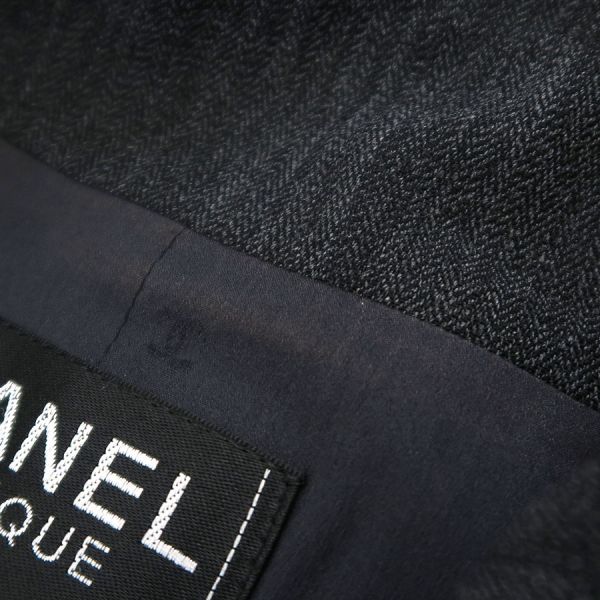 ■採寸#38 肩幅:41cm 袖丈:63cm B;88cm 着丈:68cm■素材表地:ウール90% ナイロン7% スパンデックス3%裏地:シルク95% スパンデックス5%■コメントシャネルから97Aジャケットが入荷しました!カッチリしすぎない、丸みを帯びた襟のデザインが特徴的で可愛らしい、ダークグレーカラーのジャケットです☆首周り裏地部分に茶色のスレ汚れ、両袖先裏地に茶色のスレ汚れ、右袖裏地肘付近に白い汚れ、裾や襟山に僅かなスレ、ポケットのフチ周りにややスレが見受けられる為Bランクでのご紹介となりました。着用時に目立つダメージや汚れはございませんので普段使いとしては問題ない程度です◎