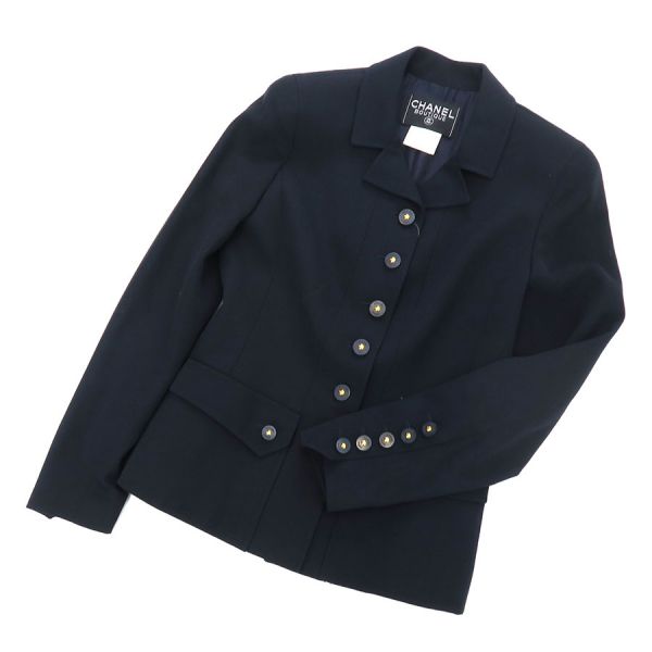 ■採寸#38 肩幅:38cm 袖丈:63cm B:88cm 着丈:59cm■素材表地:ウール100% 裏地:シルク100%■コメントシャネルから97Pジャケットが入荷しました!ネイビーのボディに映えるゴールド×ブラックのラグジュアリーなボタンがシャネルらしい存在感を放つ一着☆すっきりとしたマニッシュなシルエットでありながらも、エレガンスな雰囲気で華やかさを演出してくれます!襟裏上フチに若干の白スレ、ボタンにスレキズやくすみ汚れ、襟タグに黄ばみが見受けられる為Bランクでのご紹介となりました。着用時に目立つダメージや汚れはなく、ヴィンテージ品としてはかなり状態の良いお品かと思います◎