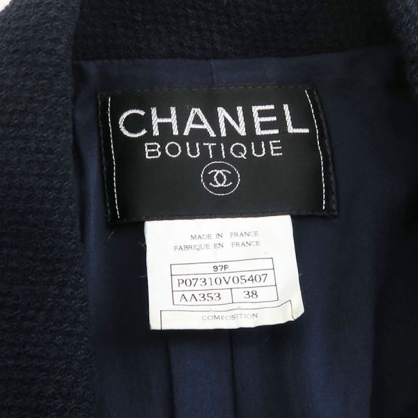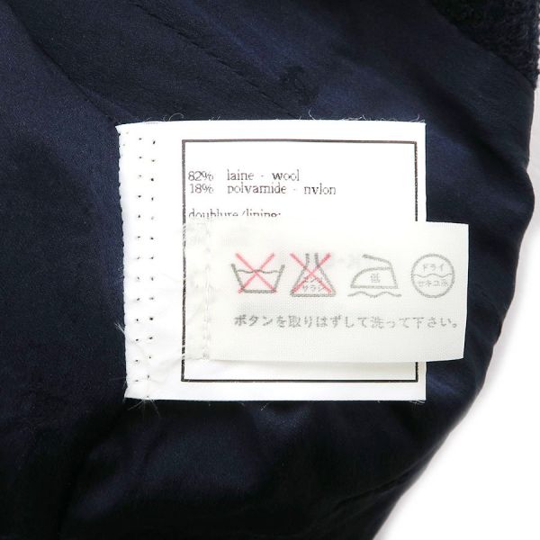 ■採寸#38 肩幅:38cm 袖丈:54cm B:88cm 着丈:69cm■素材ウール82% ナイロン18% 裏地:シルク95% スパンデックス5%■コメントシャネルから97Pジャケットが入荷しました。CHANELロゴボタンに裾にチェーンがオシャレなジャケットです☆状態は全体に起毛感、やや毛羽立ち、品質タグにミシン目の跡等が見受けられますので、Bランクでのご紹介となりました。目立つダメージや汚れはなくAランク寄りのお品です。まだまだ問題なくご着用いただけます。
