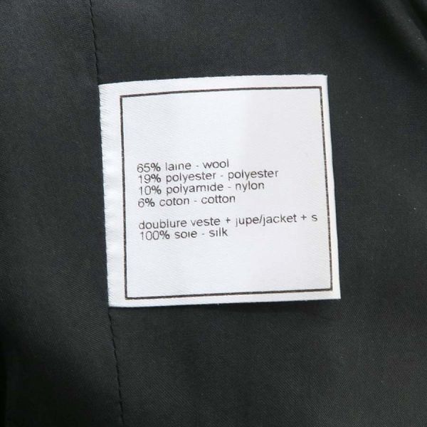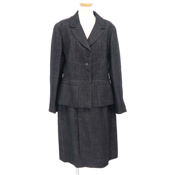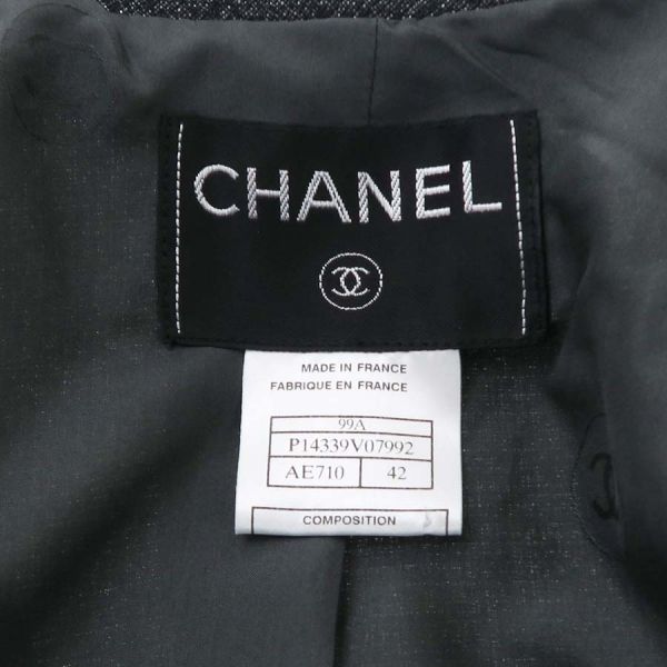 ■採寸#42ジャケット:肩幅42cm 袖丈59cm B96cm 着丈58cmスカート:W74cm H106cm 着丈61cm■素材ウール65% ポリエステル19% ナイロン10% コットン6%裏地 シルク100%■コメントシャネルから99Aスーツが入荷しました!スカートウエストプレートに糸はずれ、脇裏やスカート裏ジッパー周りなどに裂けや糸引き、ジッパーつまみにメッキ剥げやスレキズ、全体にシワやヨレ、起毛感がありますが目立つような汚れはありませんのでBランクでのご紹介となります。