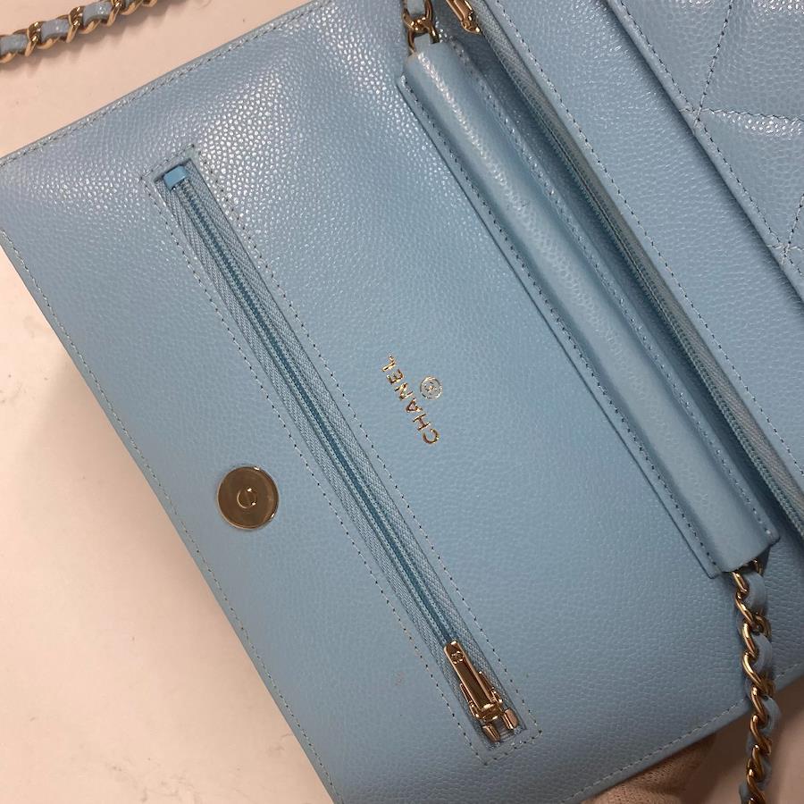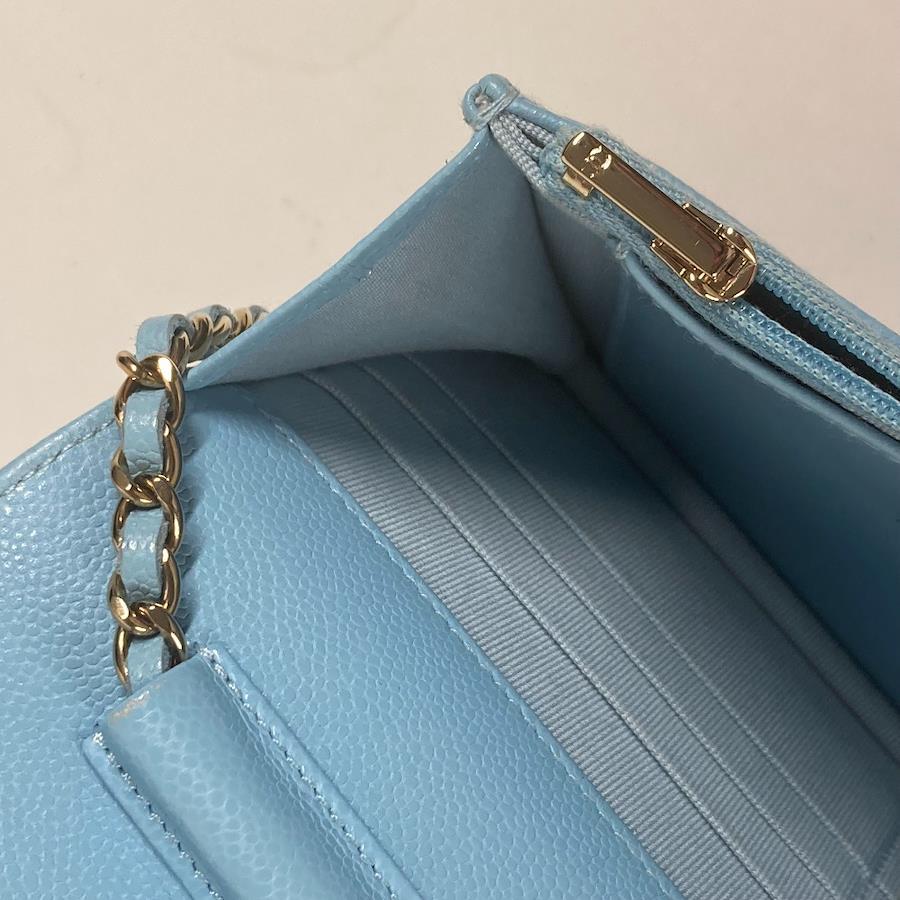 【商品説明】定番人気のシャネルのチェーンウォレット。鮮やかなブルーが可愛い。