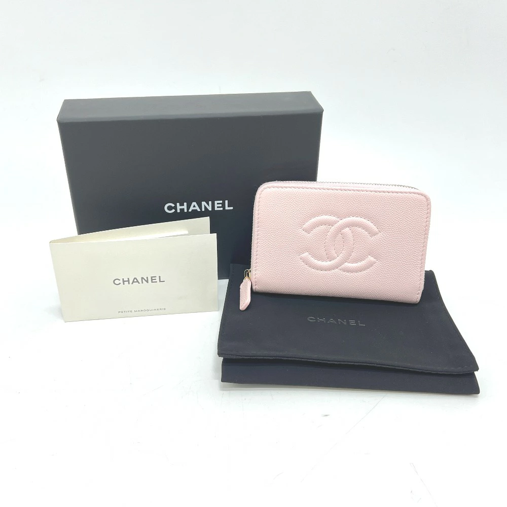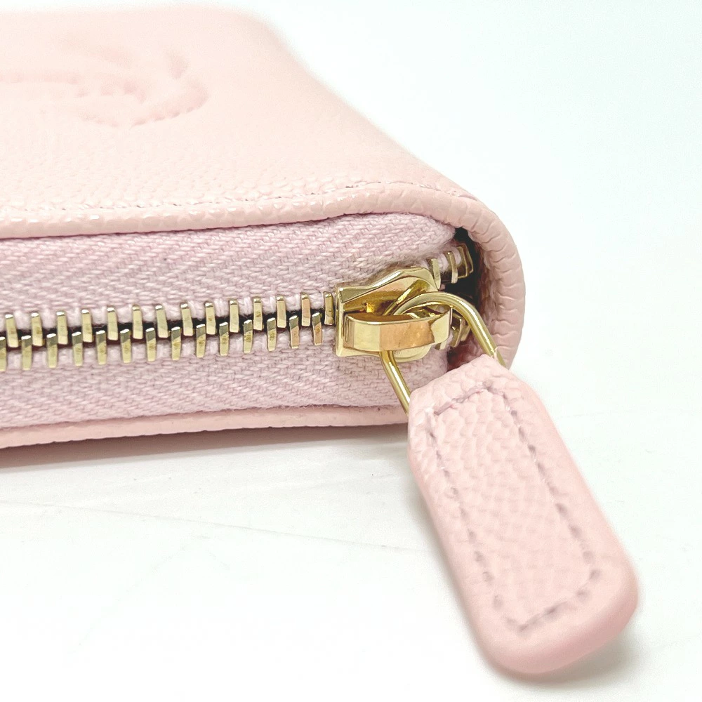 CHANEL AP4658 Coco Mark Zip Coin Purse Long Wallet in Caviar Skin, Pink, Unused, Pre-owned