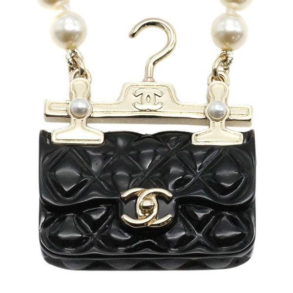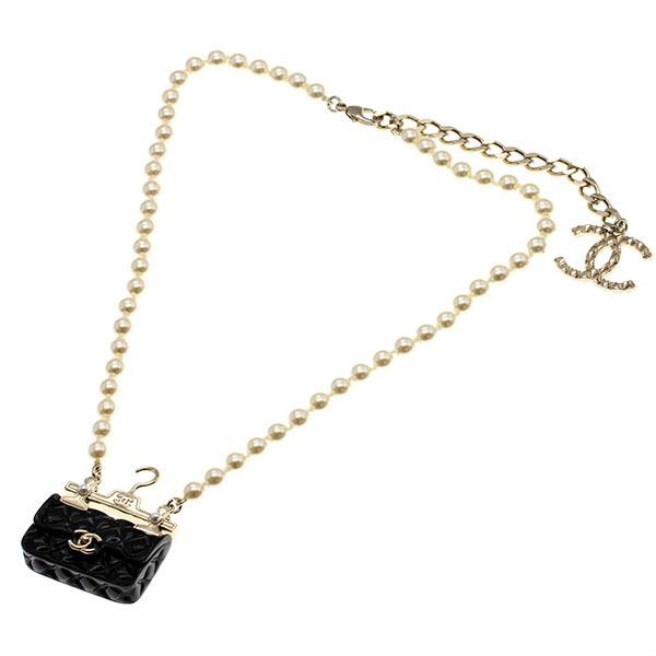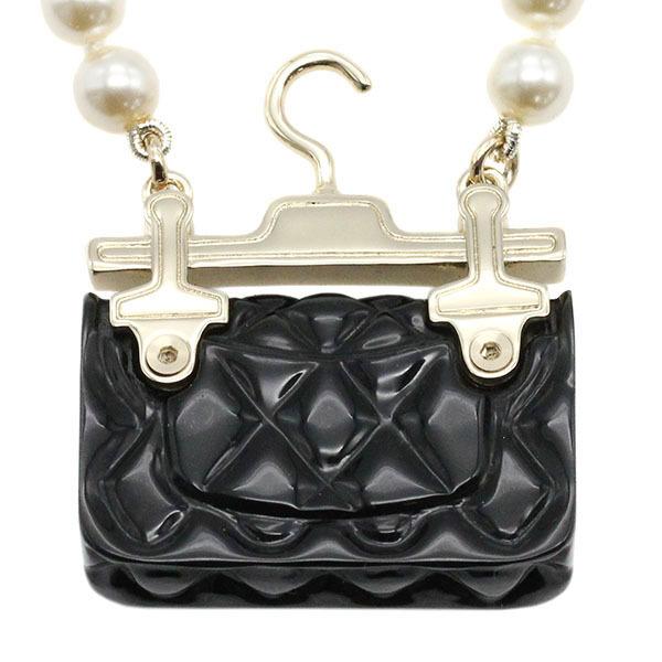 CHANEL Bag Motif Faux Pearl Necklace 41cm/50cm Matelassé Jewelry
