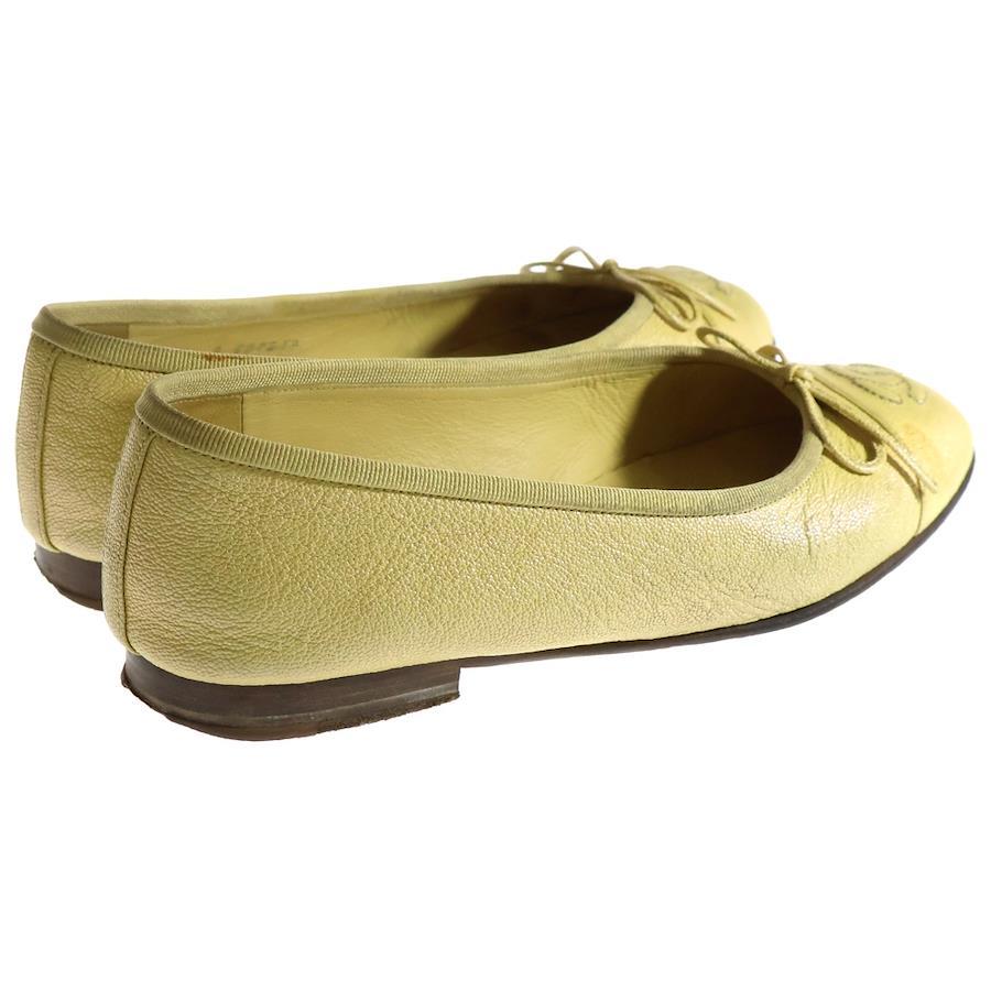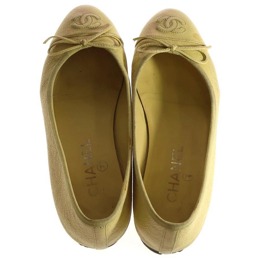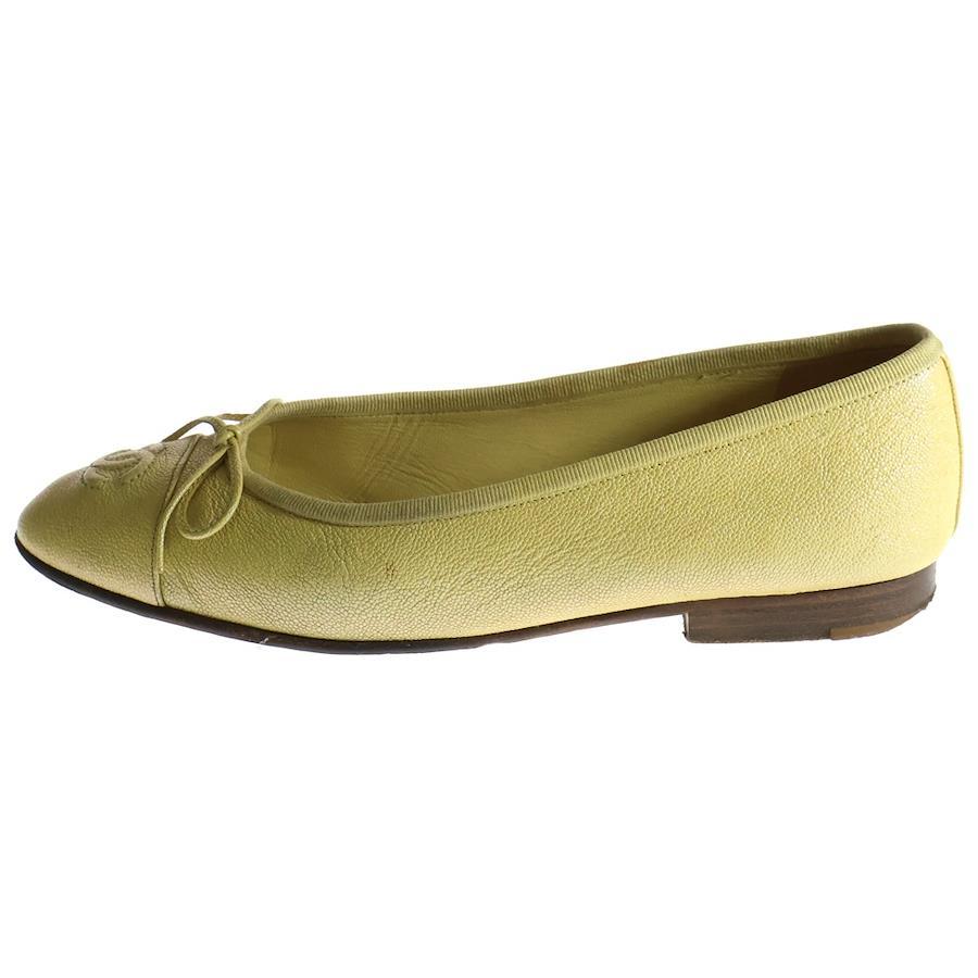 [モデル]バレリーナ リボン ココマーク レザー パンプス フラットシューズ レディース イエロー G02819