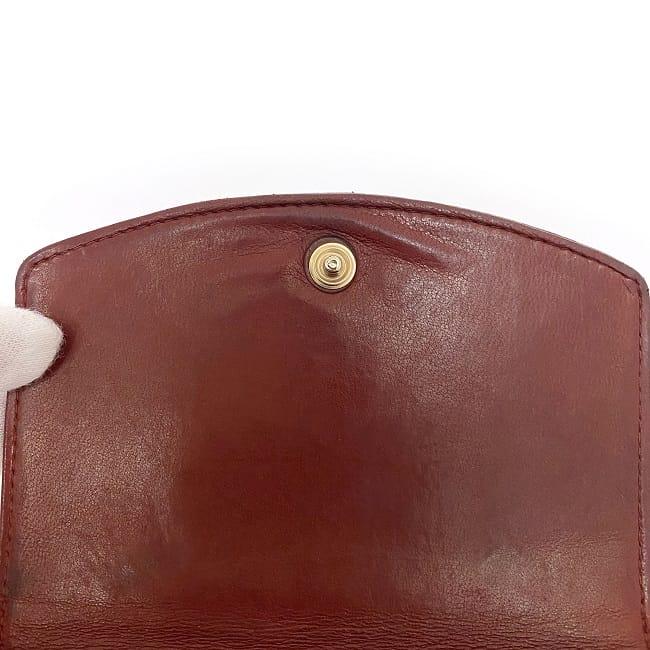 詳細説明:角や縁に擦れ、カードポケット表面に擦れや傷や汚れ、小銭入れ内に汚れ、ホックに多少の緩み有、使用感はございますがまだまだお使いいただけるお品物です。