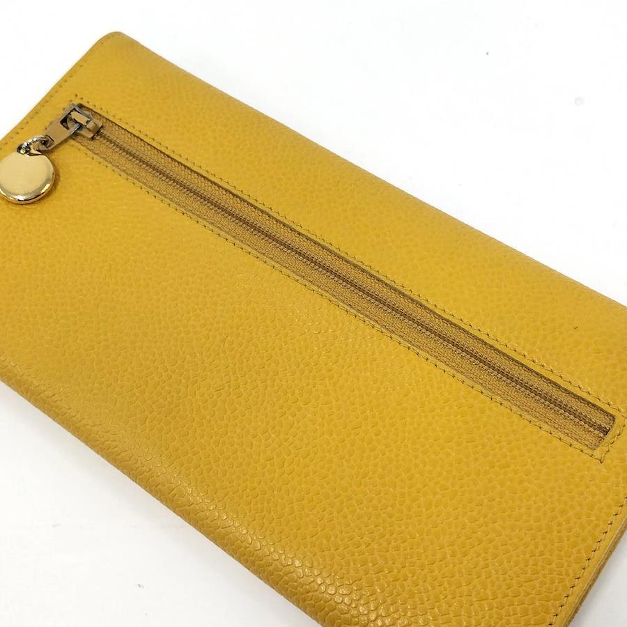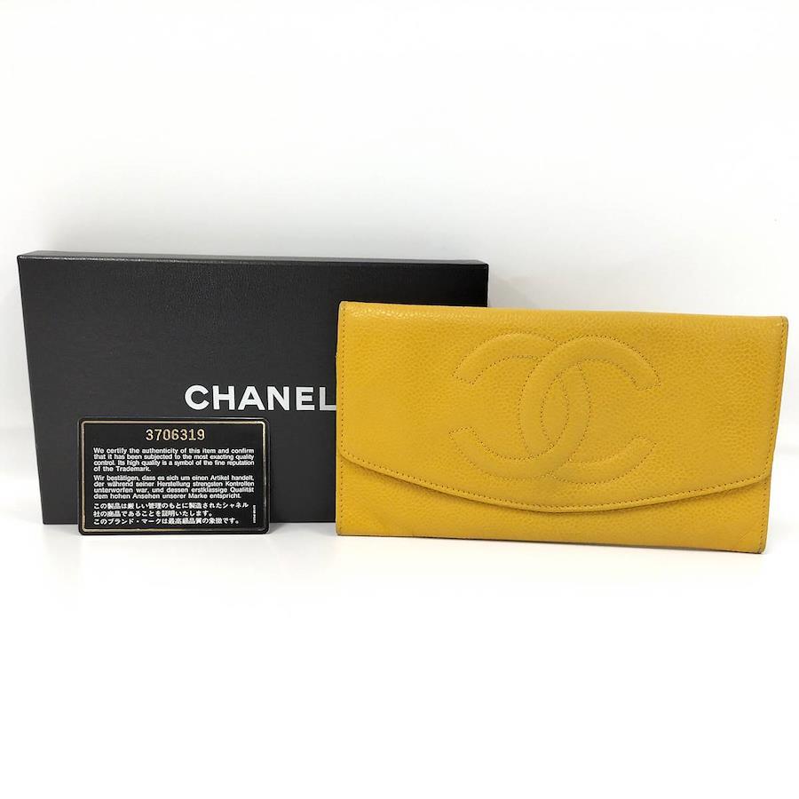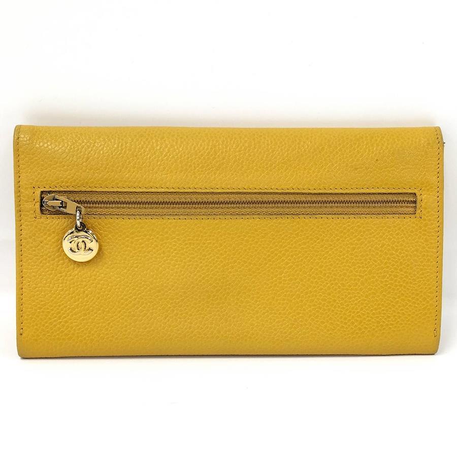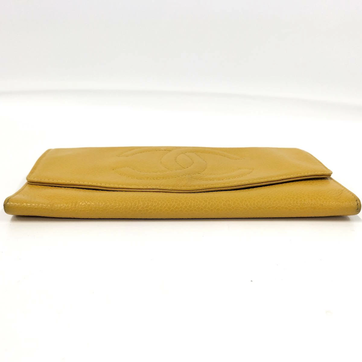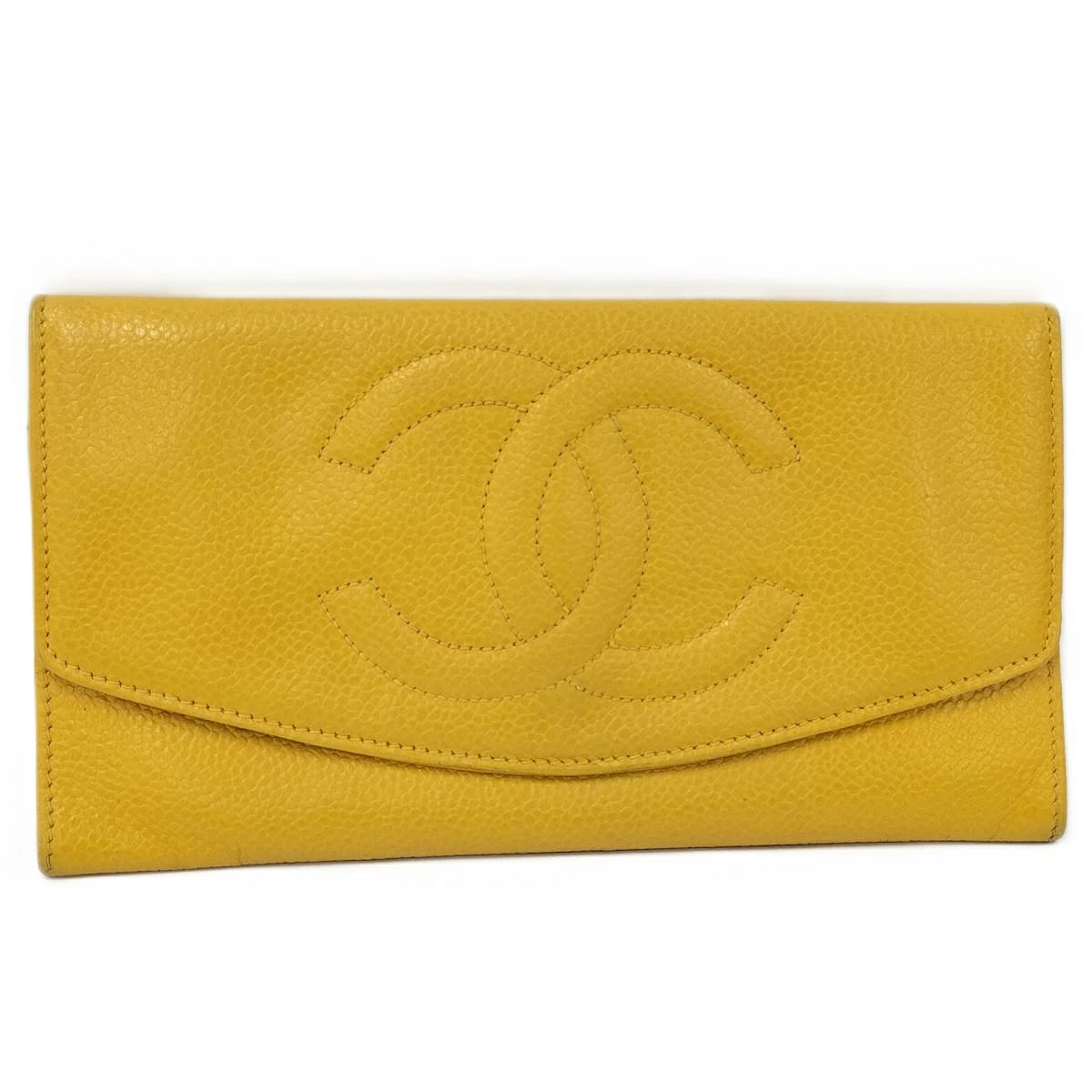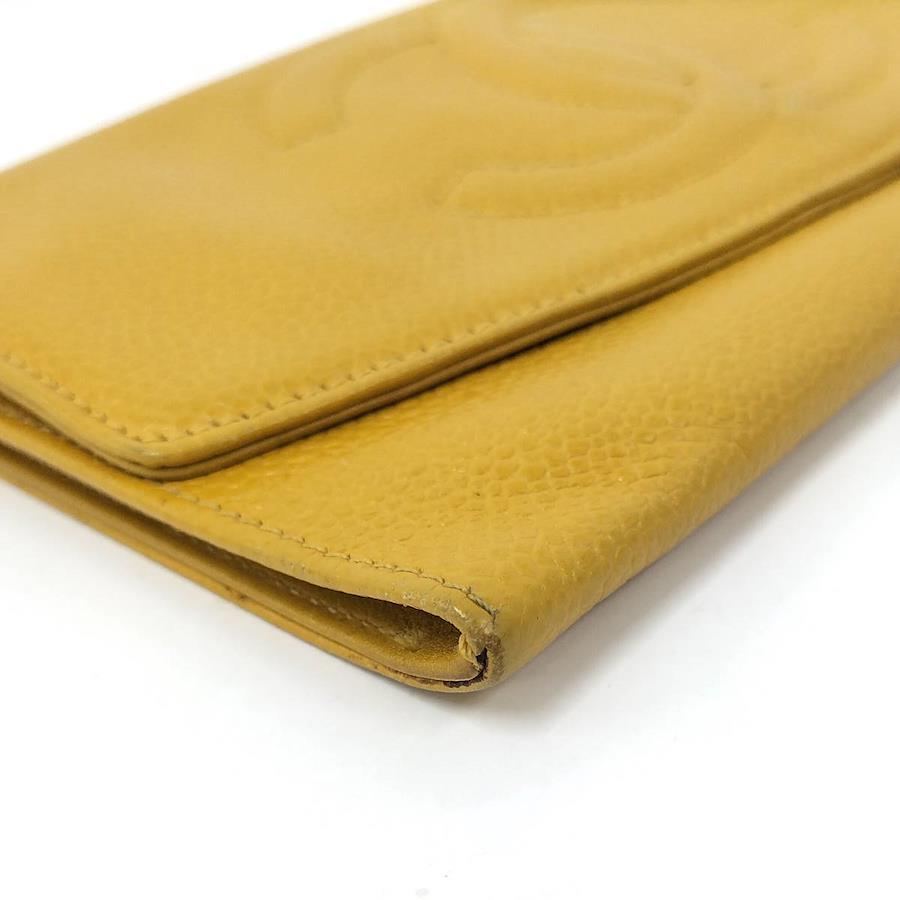 CHANEL Bifold Long Wallet with Coco Mark, Leather, Yellow
