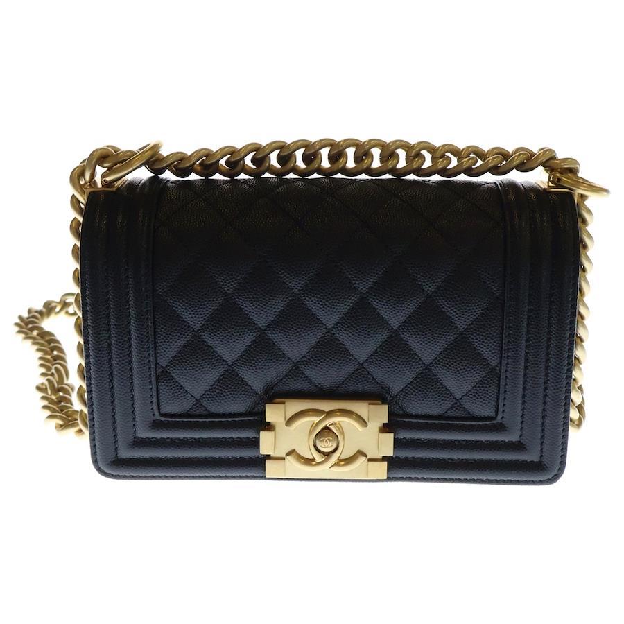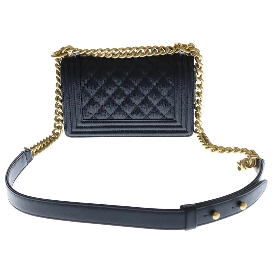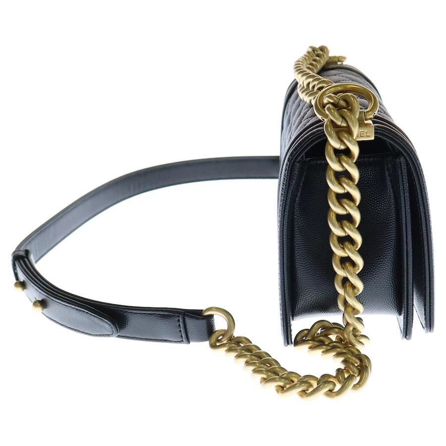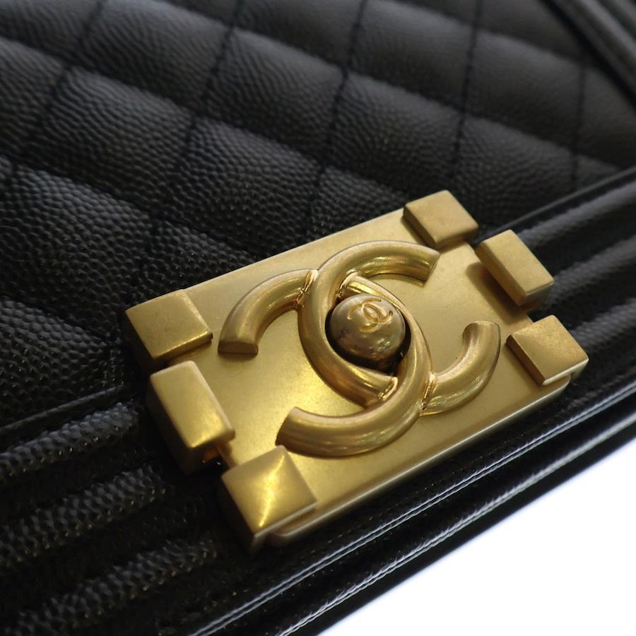 [モデル]ボーイシャネル20 チェーンショルダーバッグ ブラック キャビアスキン ゴールド金具 プレートタイプ A67085