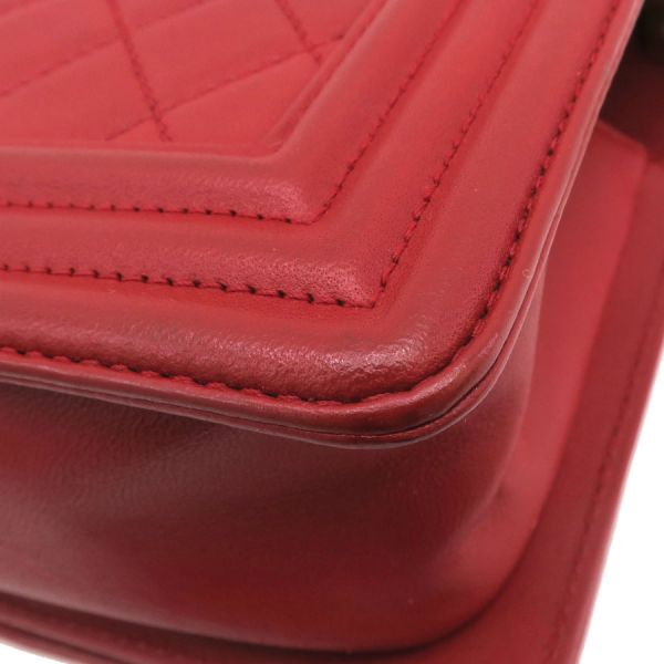 ラグジュアリーなデザインで人気の『ボーイシャネル・チェーンショルダー』が入荷いたしました☆ 金具やマトラッセ柄、チェーンのデザインがエレガントでシャネルらしさ満点♪ 内部はファスナーポケットがあるので小物の収納もでき、最低限の必需品を持ち歩くのにおすすめのサイズ感です。ぱっと目を引くレッドカラーはシンプルコーデのアクセントになりますね♪ 今回はBランクの入荷となり、全体的な使用感及びダメージに加え、本体僅かな型崩れ、表面部における擦れ及び黒ずみ、金具の小傷、角擦れ、被せ蓋裏側の擦れ、内部の生地擦れ及びうっすらとした黒ずみを感じる状態となります。 Bランク特有となる大きな使用感は抑えられており、AランクよりのBランクとなりおすすめのアイテムとなります!! いかがですか?※Gカード:なし 保存袋:なし※23番台 8桁