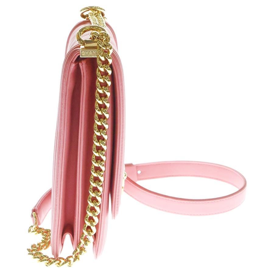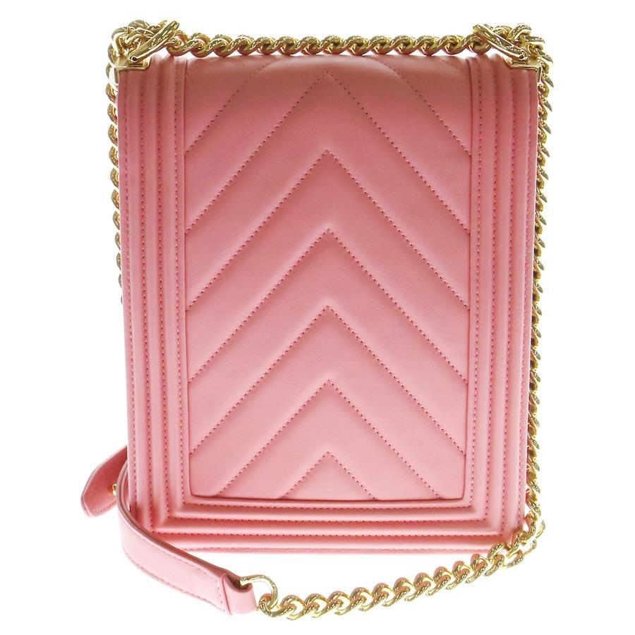 [モデル]ボーイシャネル シェブロン Vステッチ ラムスキン ゴールド金具 ショルダーバッグ ピンク レディース
