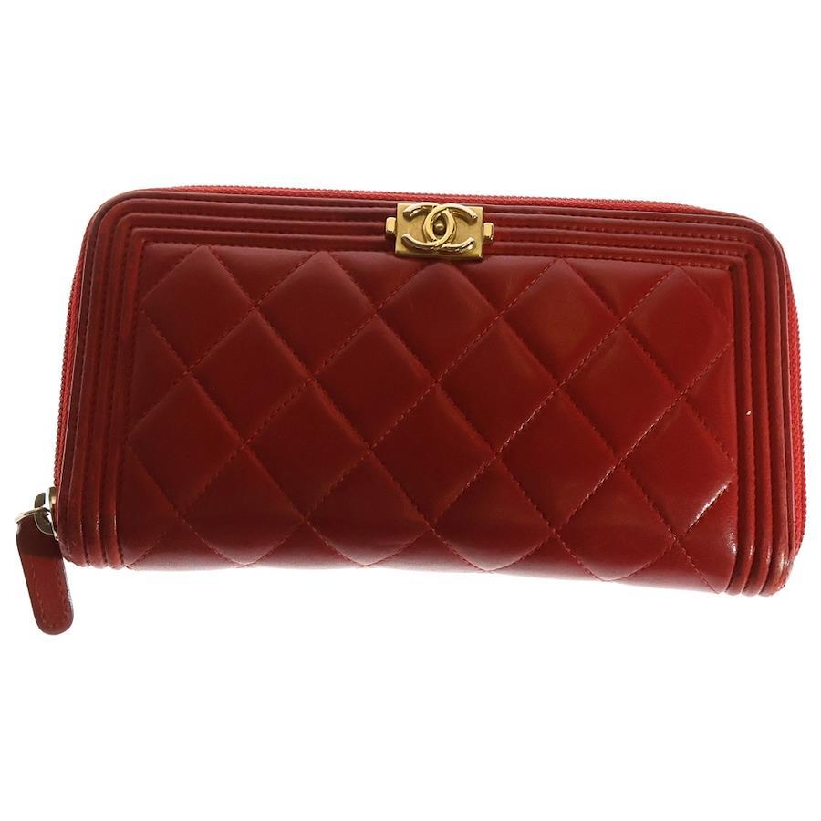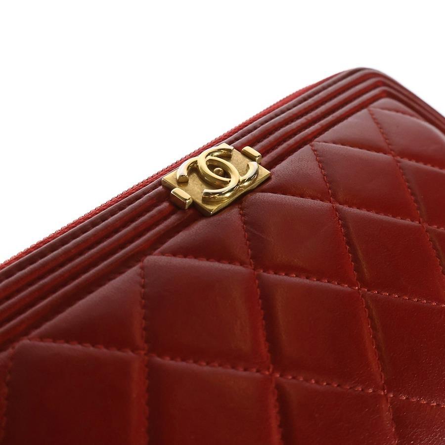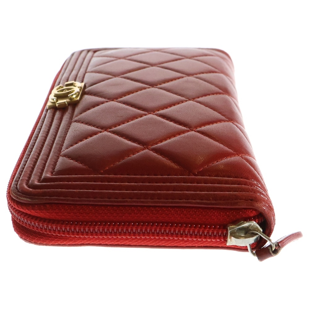 [モデル]ボーイシャネル ココマーク ラウンドファスナー ラムスキン レザー ロングウォレット 長財布 ゴールド金具 レッド 21番台