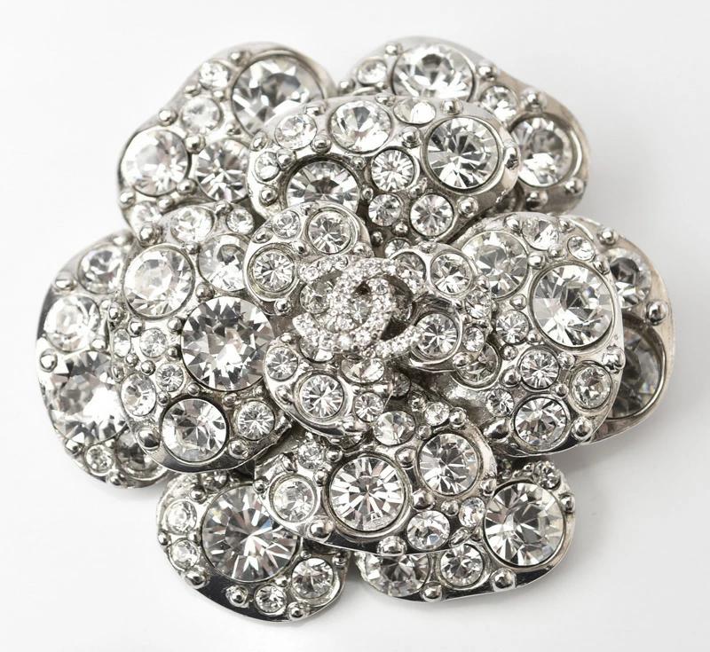 CHANEL ピンブローチ カメリアモチーフ ココマーク/ラインストーン シルバー