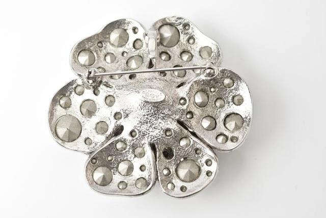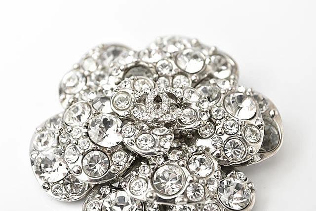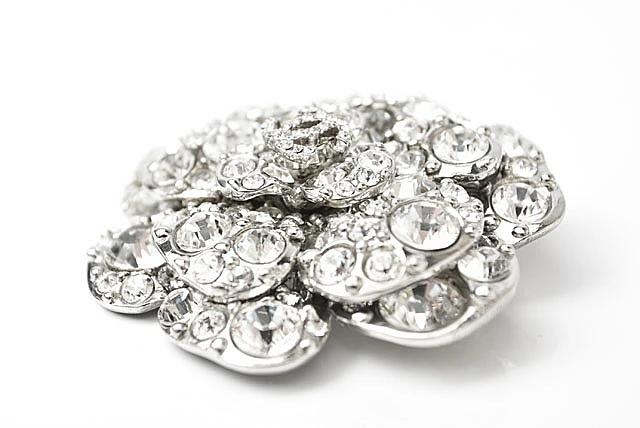 特徴 シャネルより、カメリア、センターのココマークがアクセントのピンブローチです。 大小のラインストーンがキラキラ輝き、とってもゴージャスです。 大変人気の高い、定番のシャネル カメリア ブローチ。キラキラ輝くラインストーンをふんだんに、散りばめた贅沢なデザイン。バッグや帽子、洋服の胸元のアクセントなど、普段使い、華やかなディナー、パーティ・シーンまで幅広くお使い頂けます。